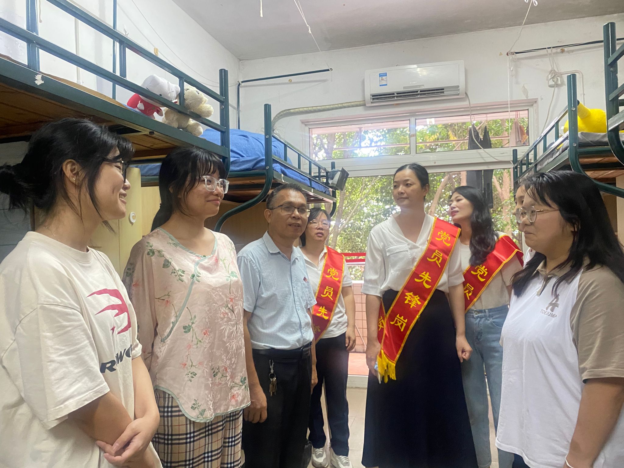 迎新当日,校园内人头攒动,各项工作秩序井然。迎新一线,师生志愿者满怀热忱,用最诚挚的服务和最贴心的关怀驱散了新生们对大学生活最后的胆怯和迷茫,新生与志愿者,你来我往,亲切且温暖。学校领导高度重视迎新工作,上午10时,校长何坚带队深入医学技术学院明智楼一楼大厅迎新现场,慰问迎新工作人员及志愿者,与2023级新生及家长亲切交流,勉励同学们要尽快适应新环境,变换新角色,争做新时代的奋进者、开拓者和奉献者。9月9日晚,医学技术学院新生班级积极召开新学期“第一次主题班会”活动。辅导员通过生动活泼的班会形式,将新学期相关学习任务和要求融入思想引领,将“学风+生活”相结合,培养医技学子良好行为习惯,号召同学们严格遵守校纪校规,将学生行为规范外化于行,内化于心。随后,辅导员们走访新生宿舍,了解新生思想行为动态,对新生们表达了无限的关怀。