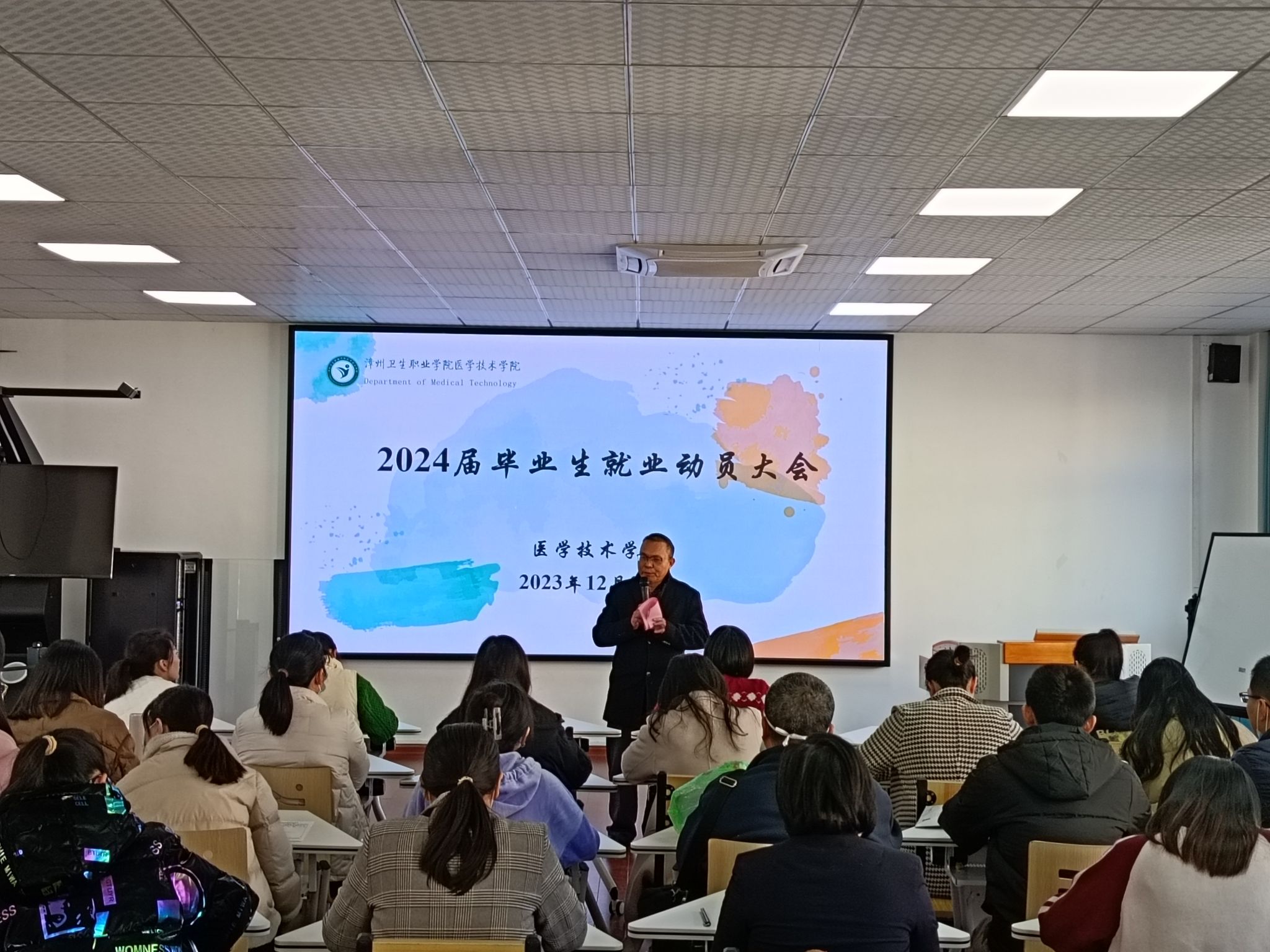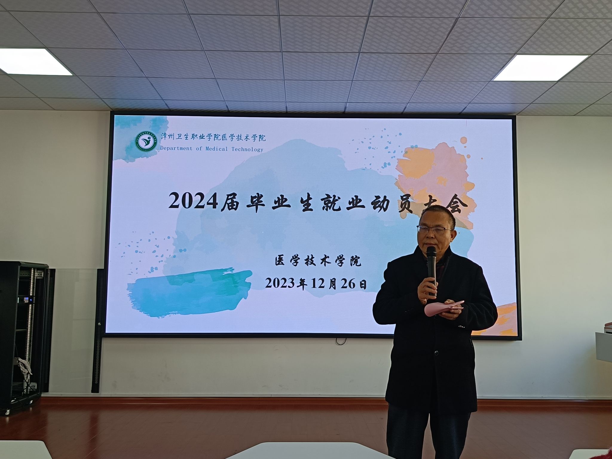 为深入学习党的二十大精神,传达贯彻2024届全国、全省及漳州市普通高校毕业生就业创业工作网络视频会议要求,医学技术学院于12月26号明智楼412会议室召开2024届毕业生就业工作动员大会。学院全体教职工参与此次会议。