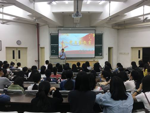 10月26日晚上,医学技术系2017级新生入党启蒙教育在明智楼6教展开。系党总支副书记作了题为“学十九大精神 争做共产党人”的辅导讲座。