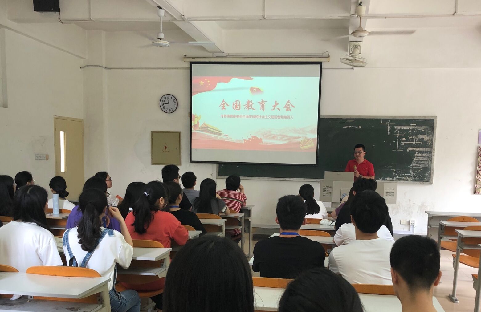 为了让同学们更好地学习理解习近平总书记在全国教育大会上发表的重要讲话精神,4月26日,医学技术系举办了以“学习习近平总书记在全国教育大会重要讲话精神”为主题的思想政治课。本次授课由医学技术系高林副书记主讲,医学技术系辅导员和2018级学生代表参加聆听。