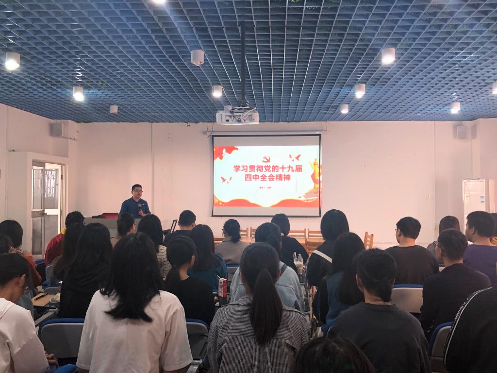 党十九届四中全会于2019年10月28日至31日在北京召开,这是一次承上启下的重要会议,讨论内容均涉及党和国家发展的重大问题。为确保党的理论学习常用常新,11月21日上午,医学技术系副书记、学公办主任、辅导员和40名学生代表在明智楼101教室集中学习十九届四中全会的会议精神,医学技术系副书记主持并做了有关报告。