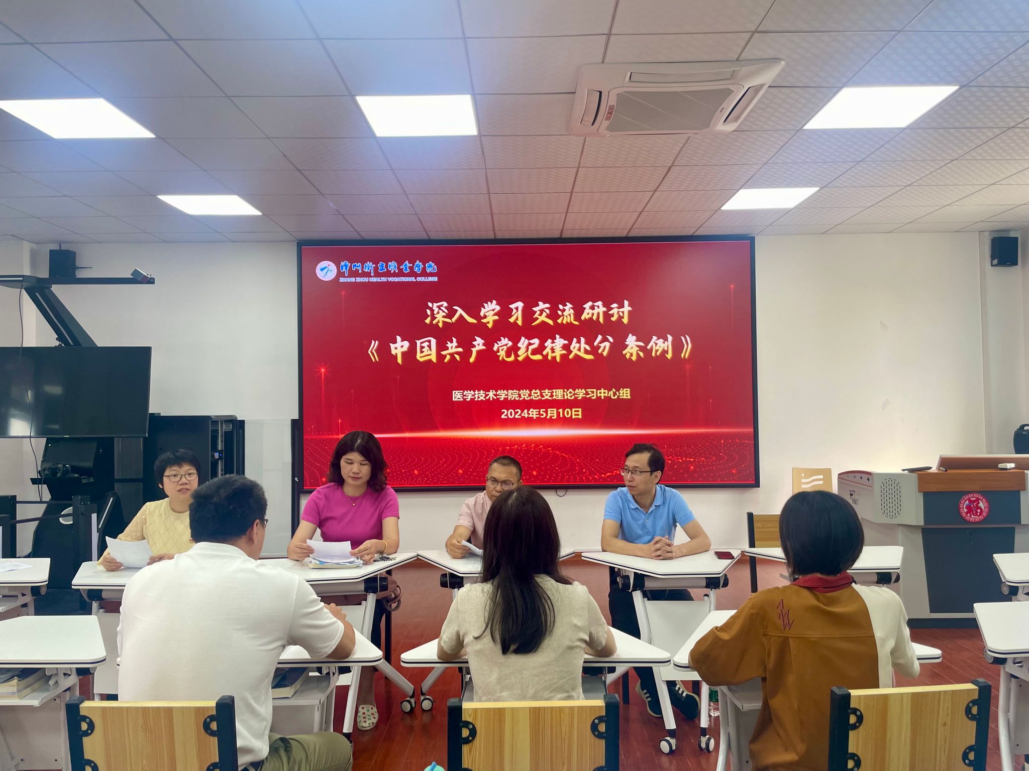 5月10日,医学技术学院党总支召开了一场专题研讨会,会议围绕《中国共产党纪律处分条例》(以下简称《条例》),以“在‘学纪、知纪、明纪、守纪’上树立更高标准、落实更严要求”为主题进行交流研讨。会议由党总支书记领学,全体党总支委员与会,并以学习《条例》的心得体会进行交流研讨。