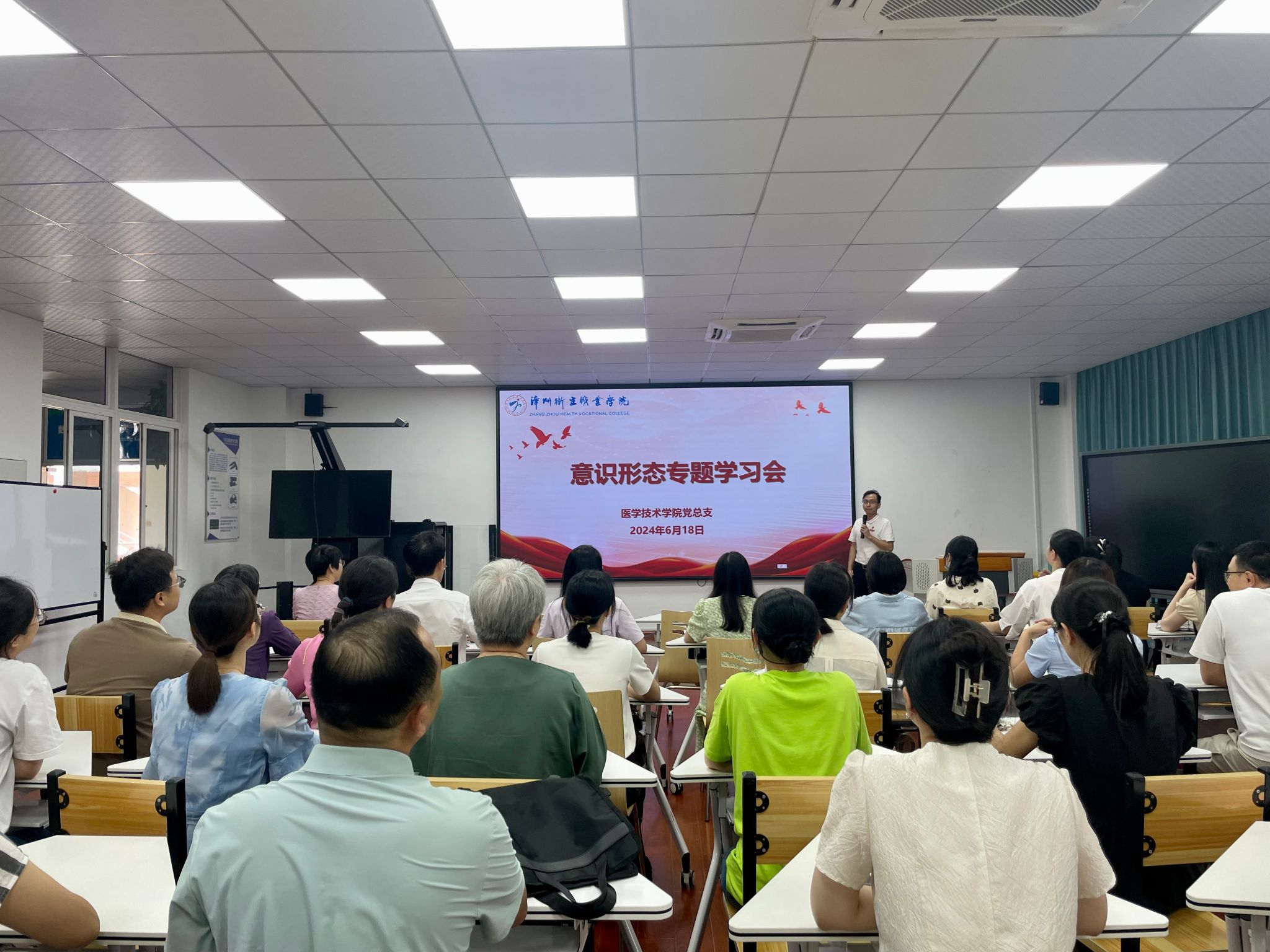 为贯彻落实党的二十大精神,深入学习习近平文化思想,加强新形势下学院意识形态安全建设,6月18日下午,我院党总支召开了意识形态专题学习会。会议由党总支书记主持,全体党员同志参会。