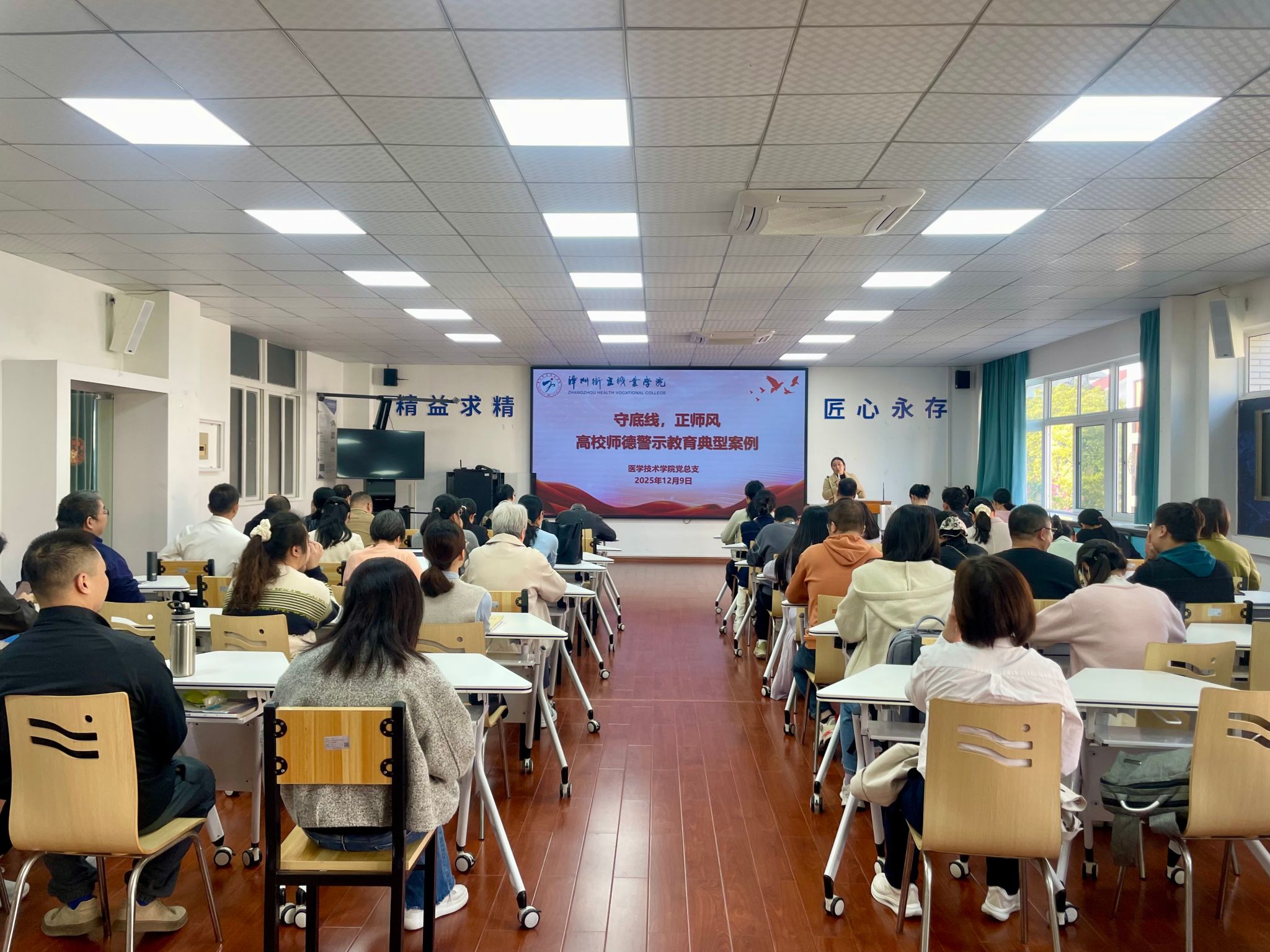 为深入学习贯彻习近平新时代中国特色社会主义思想,全面落实党中央、国务院关于深化新时代教师队伍建设改革的决策部署,引导广大教师自觉践行教育家精神,恪守职业行为准则,提升师德素养。12月9日,我院党总支组织开展“清如水仙,廉以修身——深化师德师风建设主题教育活动”,医学技术学院、基础医学院全体教师参会。