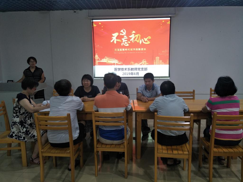 6月18日医学技术系教师支部在明智楼101开展教育不忘初心主题活动,教师支部书记陈雅静主持,党员教师参加会议。