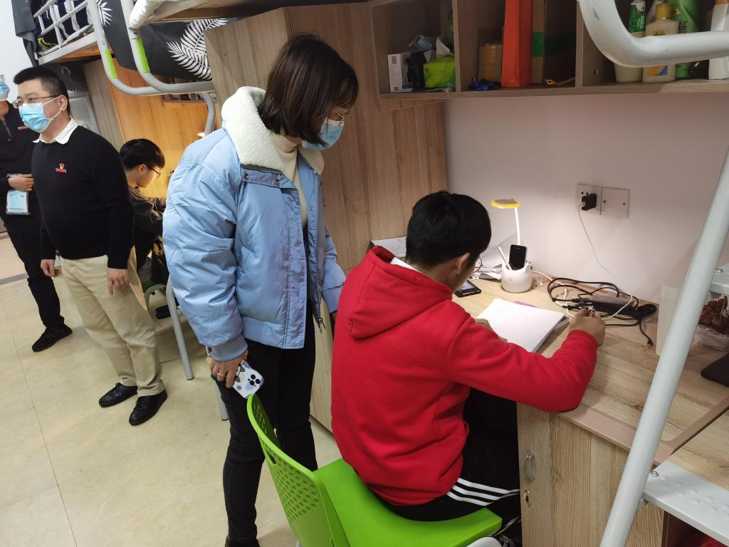 根据上级党委重要指示,为加强党员教师在学生成长中的思想引领作用,促进“三全育人”工作,切实做好学生期末考试暨寒假来临的心理摸排及思想引导工作。12月5日晚,党员教师代表走进学生公寓,开展“党员教师进宿舍,温书迎考创文明”的主题党日活动。教师党员从引导学生加强理想信念、诚信考试教育、疫情防控不松懈三个方面进行,教育学生要及时温书迎考,树立诚信考试的思想意识,要积极学习,乐观生活,有困难找老师。