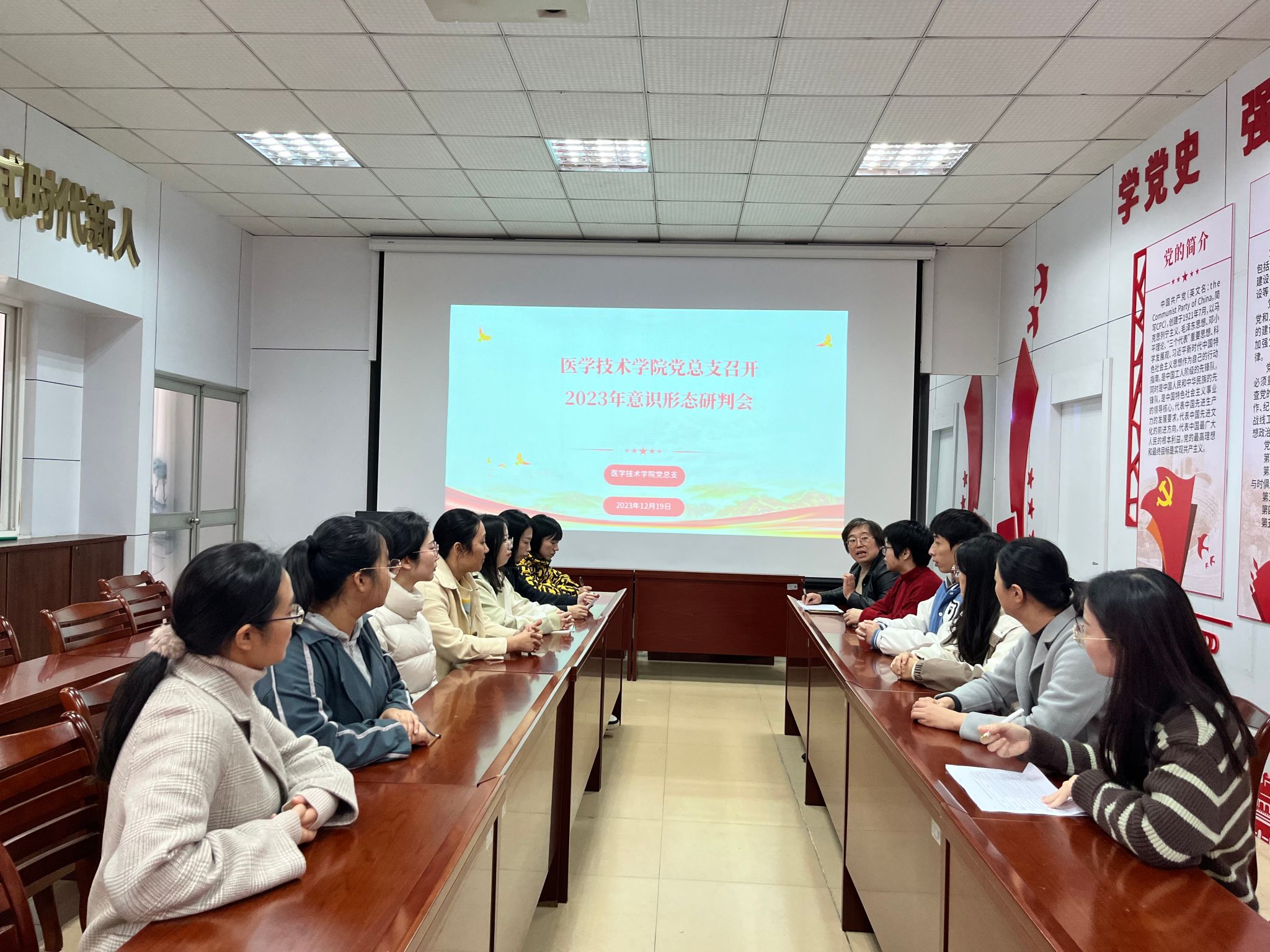 为进一步落实意识形态工作责任制,12月19日,医学技术学院党总支在明智楼401室召开了2023年度意识形态工作研判会。会议由陈雅静副书记主持,党总支委员出席、教师代表、辅导员参加会议。