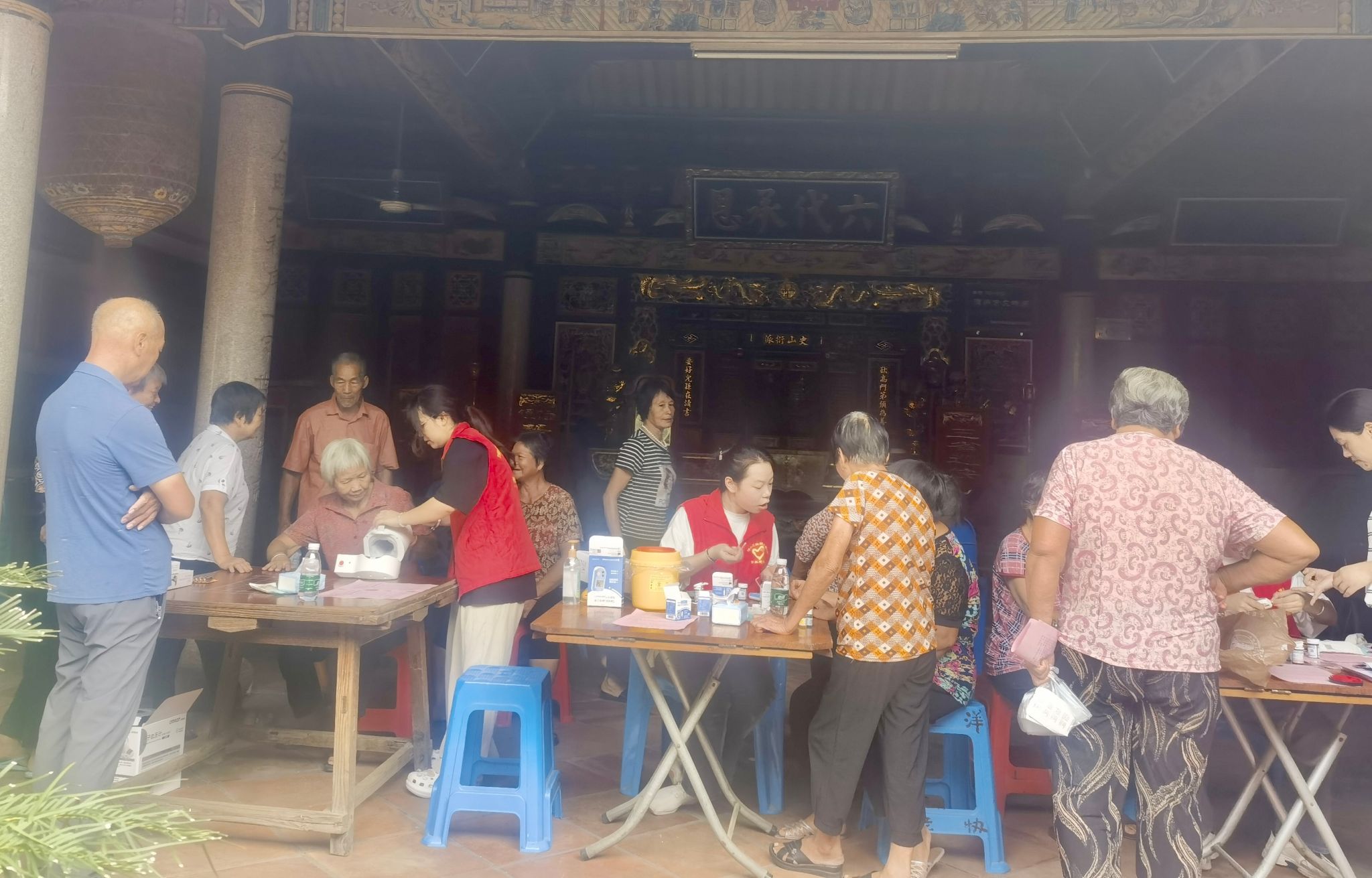 师生志愿者们刚到活动现场,很快就聚集了很多需要测试和了解的居民,大家迅速布置好现场,用通俗易懂的闽南语为居民们讲解血压、血糖及尿酸血压等科普常识,普及高血压、高血糖的预防及注意事项,提醒他们注意健康饮食,做适量的运动,为自己的身体保驾护航。不少农村居民也对血糖尿酸知识尤其关注,通过志愿者讲解,深入浅出地为居民讲解了糖尿病及痛风的常见症状及其预防要点,现场教会记忆顺口溜“四五不高七,八九不离十”等。现场学习的居民表示,很少能记得住的指标,轻轻松松就被教会了。