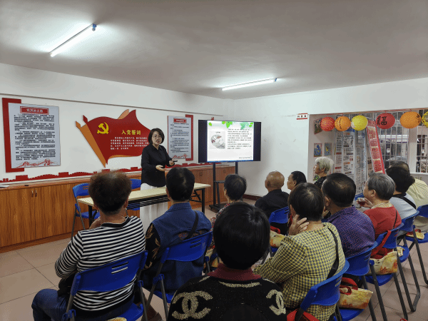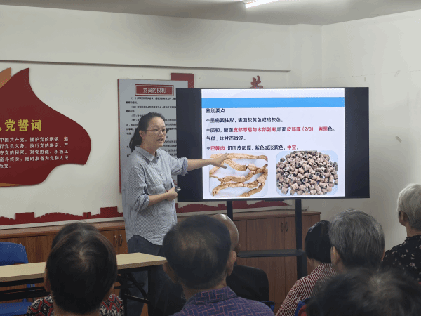 活动伊始,药学院中药学专业教师沈晓华以闽台中药为主题,生动讲解了常见中药的性状鉴别技巧,帮助老人辨识药材真伪;中药材生产与加工专业带头人陈育青教授则结合秋冬季节特点和本地饮食习俗,分享了家常实用的养生知识,现场老人认真聆听并频频记录。随后,志愿者细致为老人测量血压并记录数据,针对异常结果提供个性化建议,叮嘱其及时就医,彰显专业与关怀并重的服务理念。