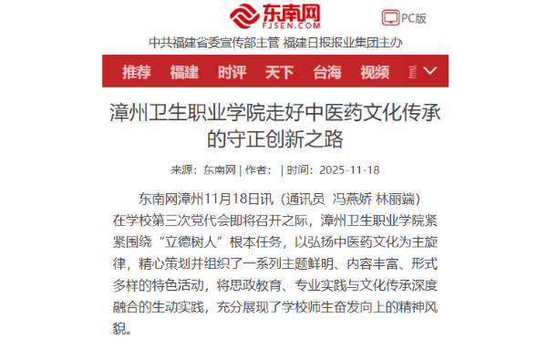 东南网:漳州卫生职业学院走好中医药文化传承的守正创新之路