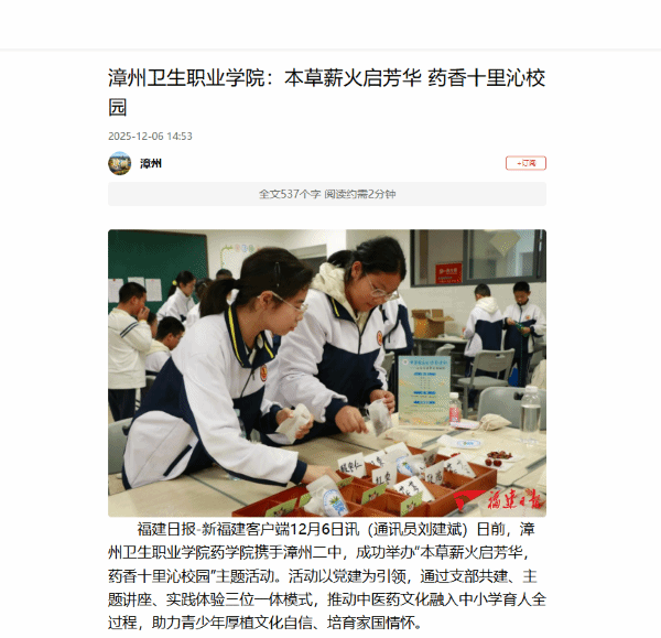 新福建:漳州卫生职业学院:本草薪火启芳华 药香十里沁校园