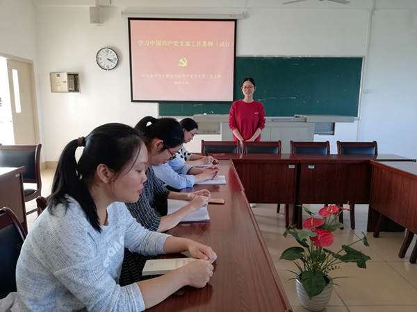 为强化党支部政治功能,提高党员政治修养,11月11日下午,药学系学生第二党支部在致远楼512会议室开展学习《中国共产党支部工作条例(试行)》专题党课。党课由支部书记主讲,支部全体党员参加。