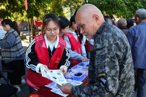 活动期间,海洋本草探秘环节备受青睐。志愿者通过学校海洋中药标本照片、科普手册,系统介绍海带、牡蛎、海马等海洋生物的药用价值与养生功效,打破村民对中医药“只知草木,不识海产”的认知。现场问答互动热烈,志愿者还手把手教村民辨别道地药材与相似植物,帮助大家认识身边的“天然药库”。