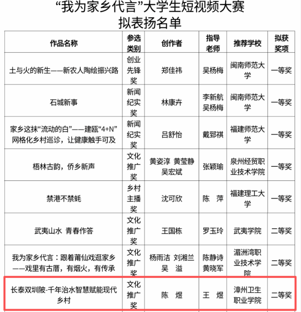 近日,由福建省农业农村厅主办的2025年福建省“我为家乡代言”大学生短视频创作大赛结果揭晓,我院学子在众多参赛队伍中脱颖而出,斩获二等奖1项、三等奖1项。