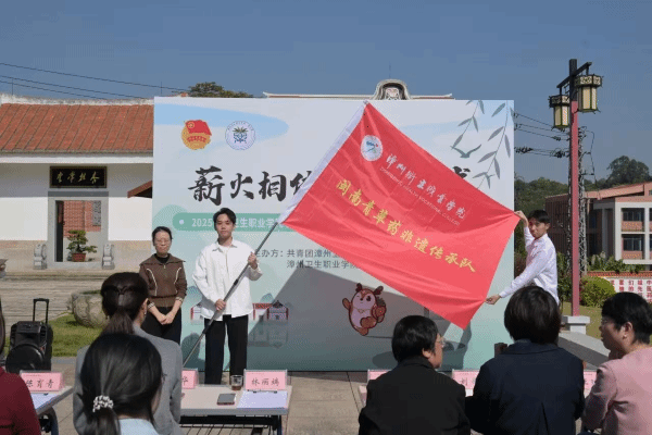 赛后举行“闽南非遗文化传承队”成立仪式,药学院党总支书记为传承队授旗,并寄语队员们:“解说大赛锻炼的是你们的表达与应变,而传承队赋予的是责任与使命。希望你们既能讲解好每一株药材,也能传承好每一段文化,让中医药与闽南非遗在你们的声音中生生不息。”