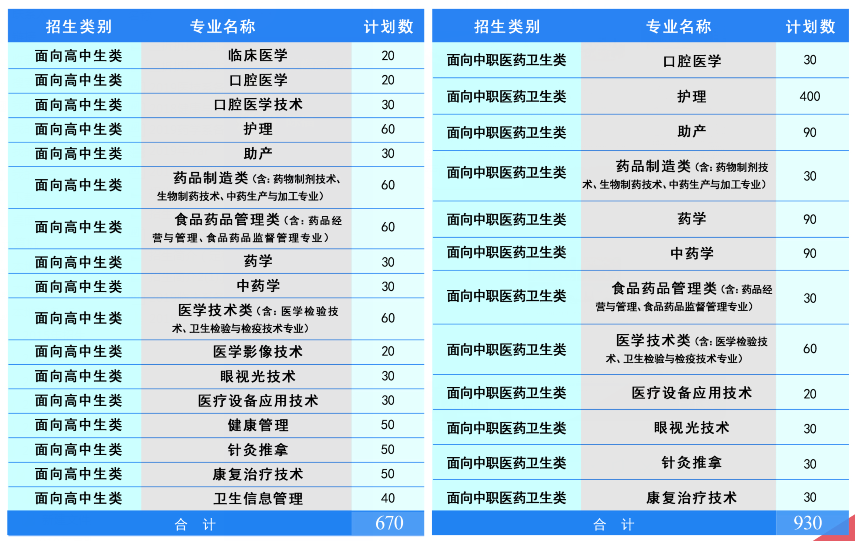 2019年漳州卫生职业学院高职招考分专业招生计划
