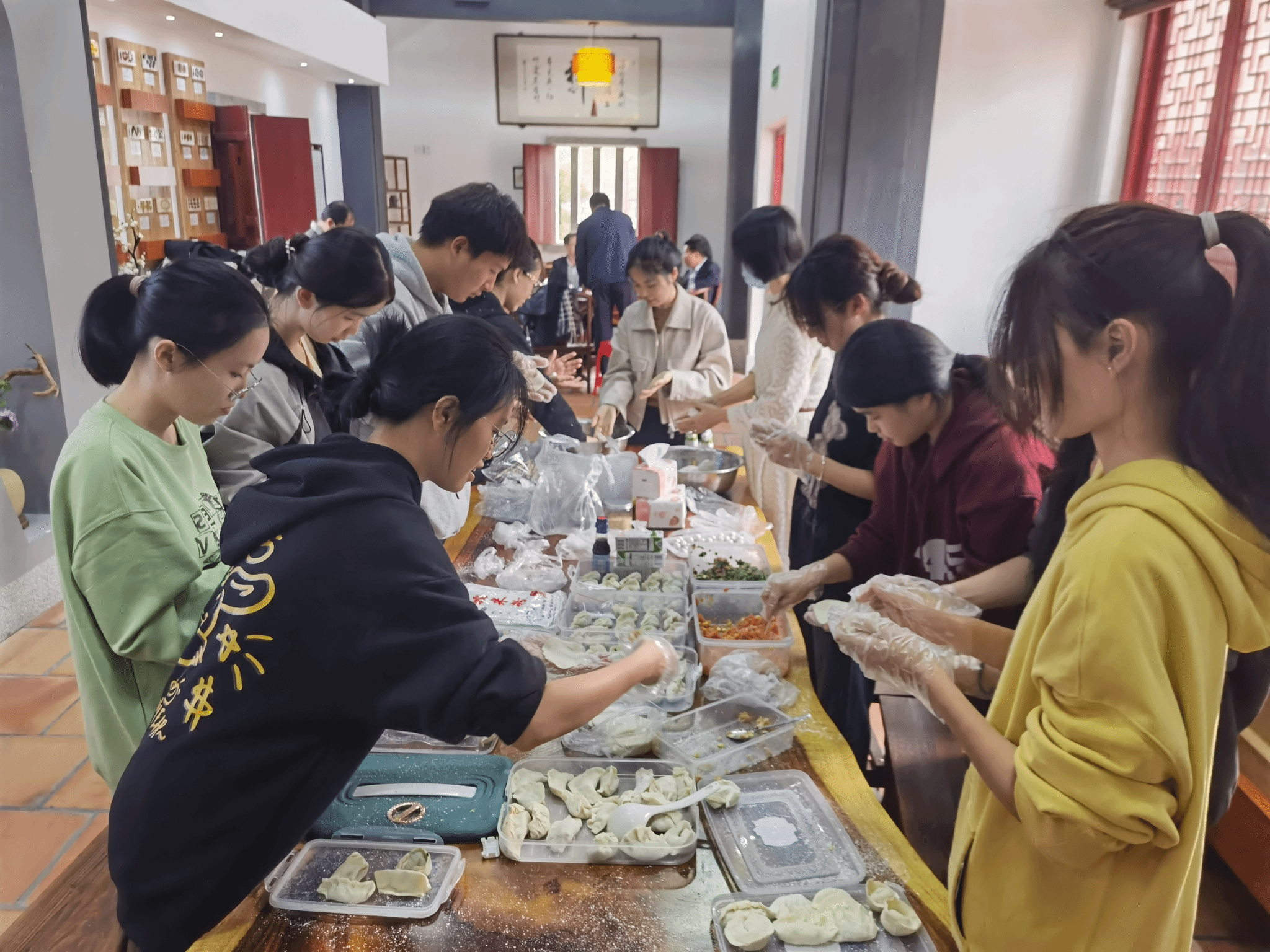 活动以传统的健身气功八段锦拉开帷幕。“上托、下落、搭腕、开弓、并步......”,师生们在田治国老师的带领下将动作与气息相融合,一招一式尽显神韵,为活跃校园文化建设增添了一道亮丽的风景线。随后,筹备已久的师生DIY传统美食活动正式开始。校领导和师生们一起包馅儿、做造型、捏花边……用不同手法与创意捏出各具风格的饺子,欢声笑语凝结成冬日里最温暖的画面,将浓浓的节日热情转化为爱校兴国的责任担当。领导们亲切询问大家的工作、学习和生活等情况,叮嘱师生们要努力学习、工作,热爱生活,有困难和问题要及时沟通交流。校领导的关爱之语,让师生们感受到浓浓的暖意。