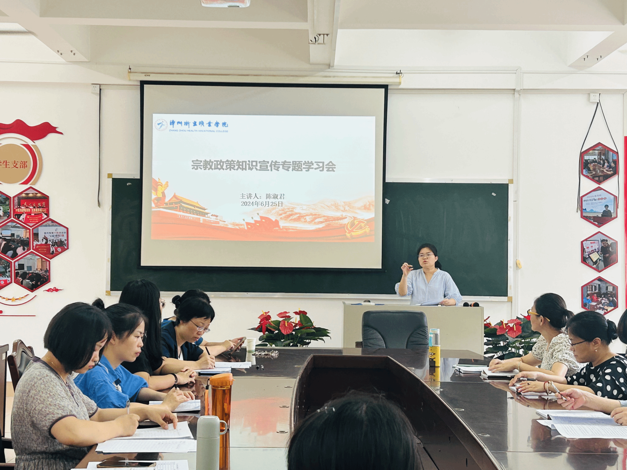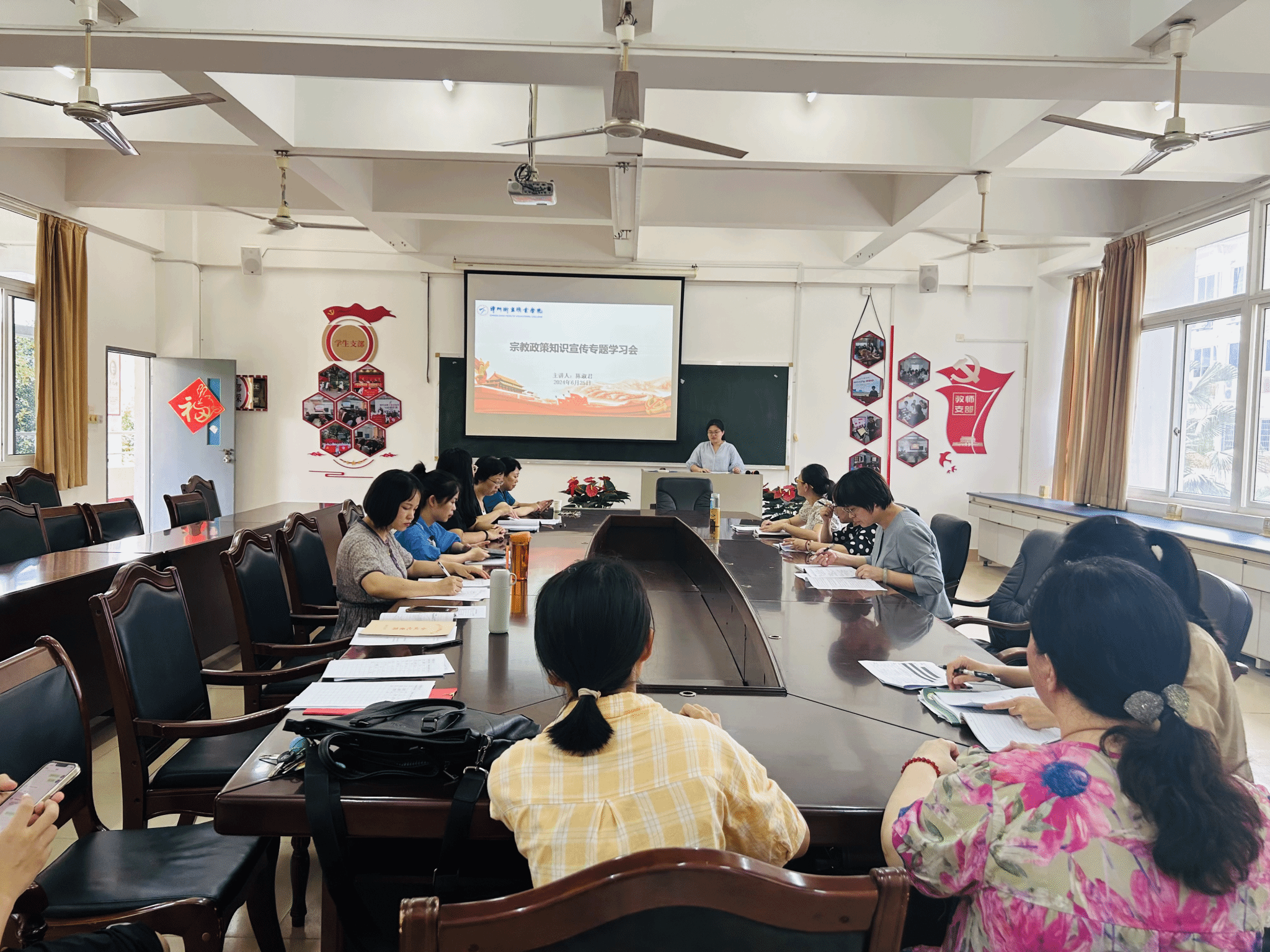 为深入学习习近平总书记关于加强和改进民族工作的重要思想、关于宗教工作的重要论述,进一步铸牢中华民族共同体意识,6月25日下午,学院党总支组织全体教职工在致贤楼301召开宗教政策知识宣传专题学习会。党总支副书记主持会议。