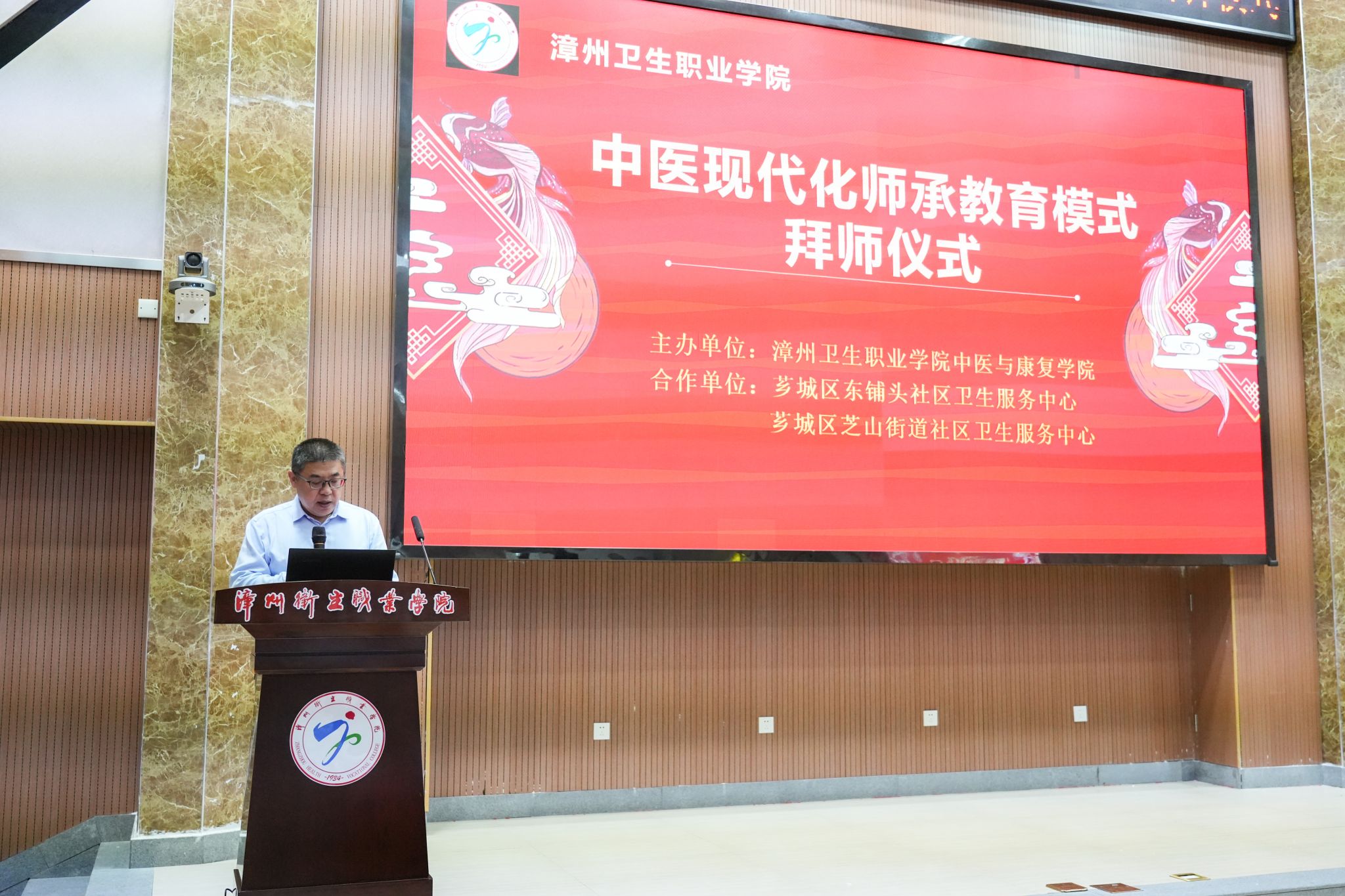 为传承与培养更多优秀的中医药基层人才,2024年11月21日,中医与康复学院在学术报告厅举行了中医师承拜师仪式,学校副校长张春斌、芗城区东铺头社区卫生服务中心书记戴丽彬、芗城区芝山街道社区卫生服务中心书记游政勇、12位导师、中医与康复学院领导班子及中医教研室全体教师参加了仪式。