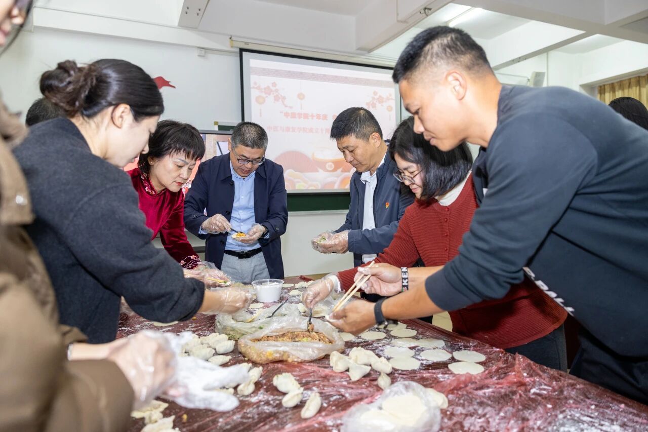 活动聚焦中医药文化的“生活化传承”,设计了兼具趣味性与知识性的实践环节。现场特别推出了两款融合中医养生理念的冬至特色汤圆,由红枣、枸杞、桂圆调配而成的“补气养血汤圆”,以及以黑芝麻、核桃为馅的“益肾固元汤圆”。这两种配方并非随意搭配,而是依据中医“冬季养藏”“适时进补”的理论精心调制,使传统美食成为传播中医药文化的生动教材。在师生共同动手制作的过程中,专业教师现场讲解各类食材的性味、归经与养生功效,将“药食同源”“阴阳调和”等抽象的中医理念,转化为看得见、摸得着、吃得懂的生活常识,实现了理论讲解与实践操作的深度融合。同学们表示:“原来汤圆里也蕴含着中医的智慧!希望今后能举办更多类似活动,让中医药知识从课堂走向生活,从理论走向实践。”