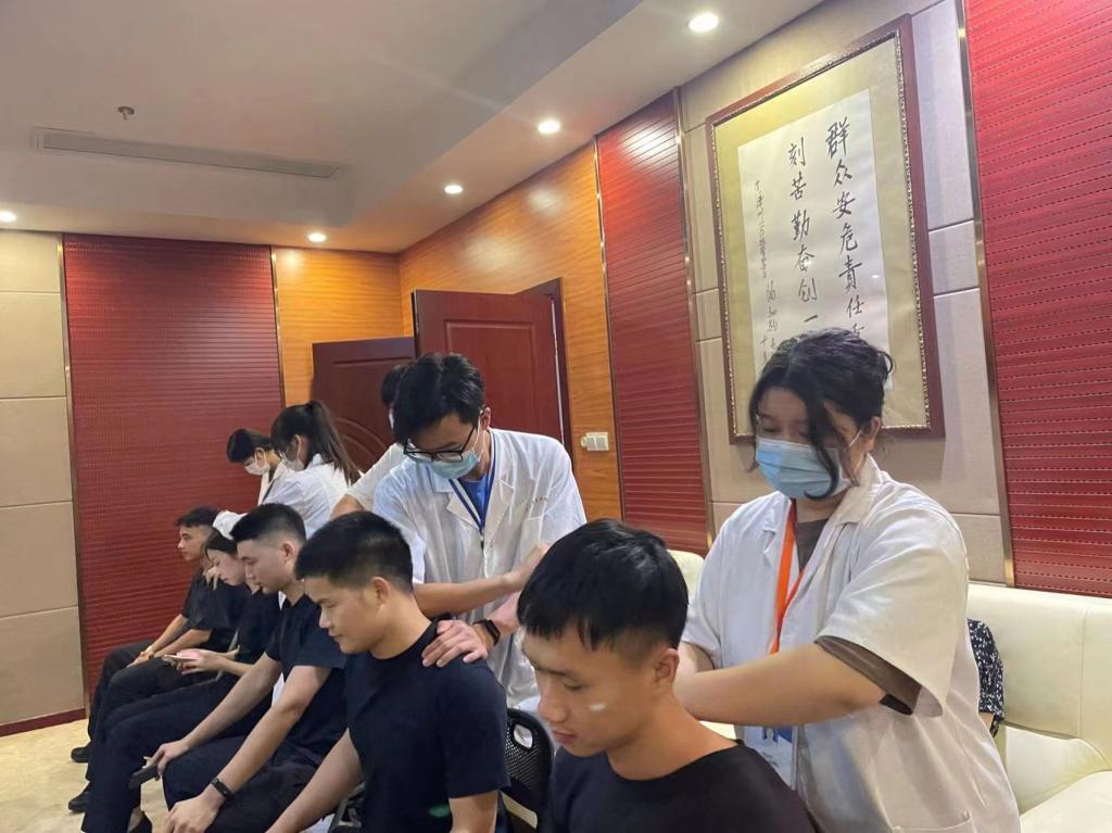 参观结束后,党员师生还结合医学院校专业特点,为50余名支队队员提供肩颈放松、拔罐、刮痧等传统中医适宜技术服务,并介绍简单易学的中医理疗保健方法,方便队员在闲暇时自我放松,服务深受好评。