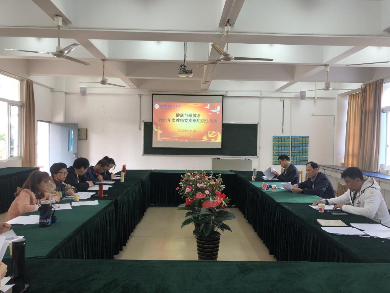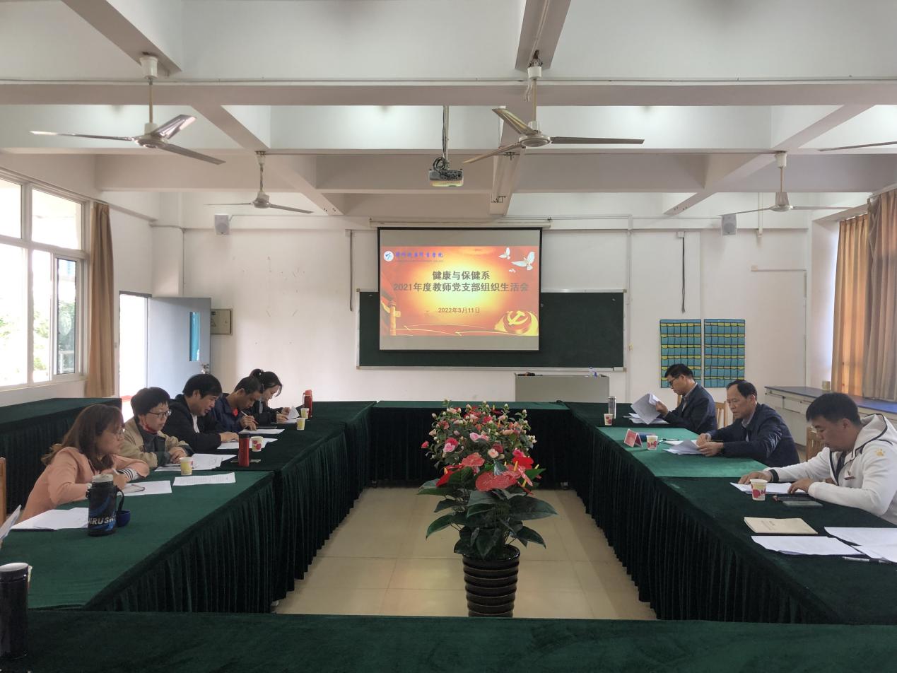 3月11日,健康与保健系教师党支部于致贤楼301召开2021年度组织生活会并开展民主评议党员。会议由支部书记主持,全体党员参会,学院党委书记林忠莅会指导。