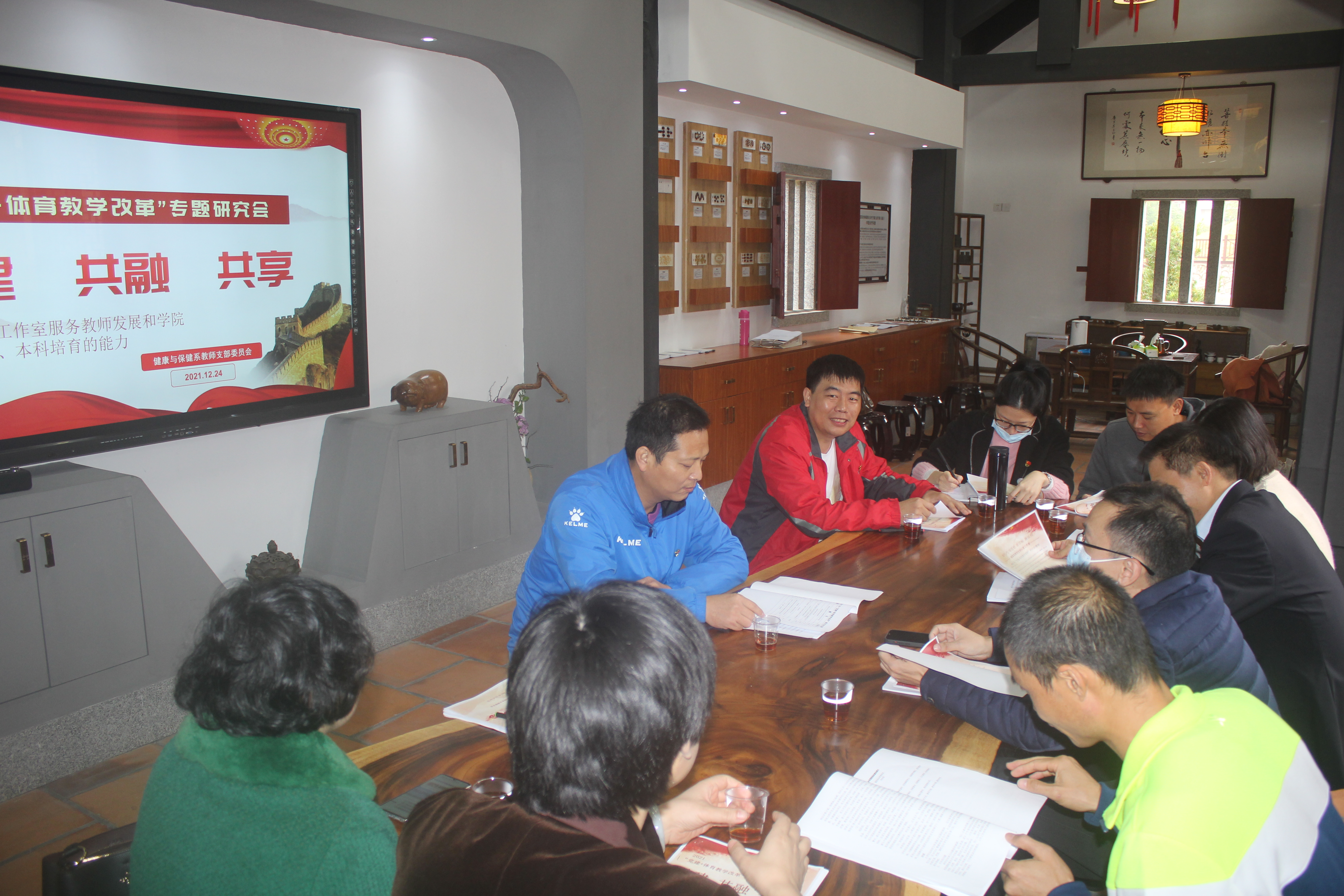 12月24日上午,健康与保健系教师党支部在杏林学堂开展以“共融、共建、共享”为主题的党建+体育教学改革研讨会,系部党政领导和支部全体党员参加,会议由支部书记主持。