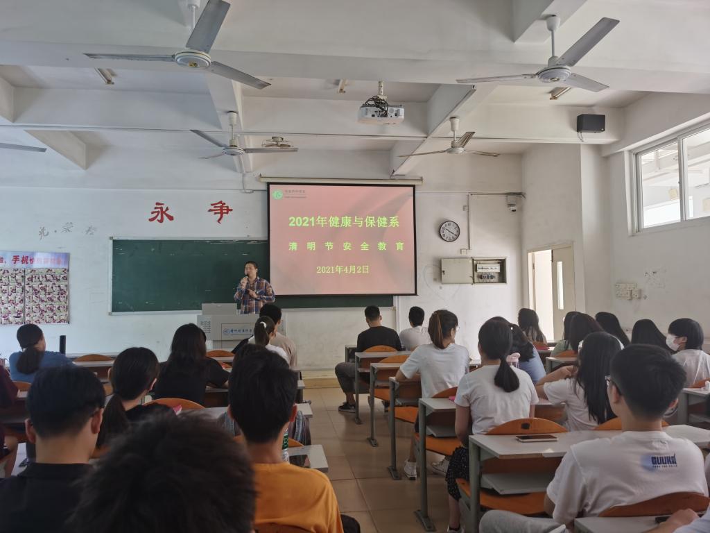 4月1日至2日,健康与保健系各班级在明德楼教室召开清明节前环保及安全主题班会,班会由各班辅导员班主任主持,全体在校生以主题研讨等形式参与其中。