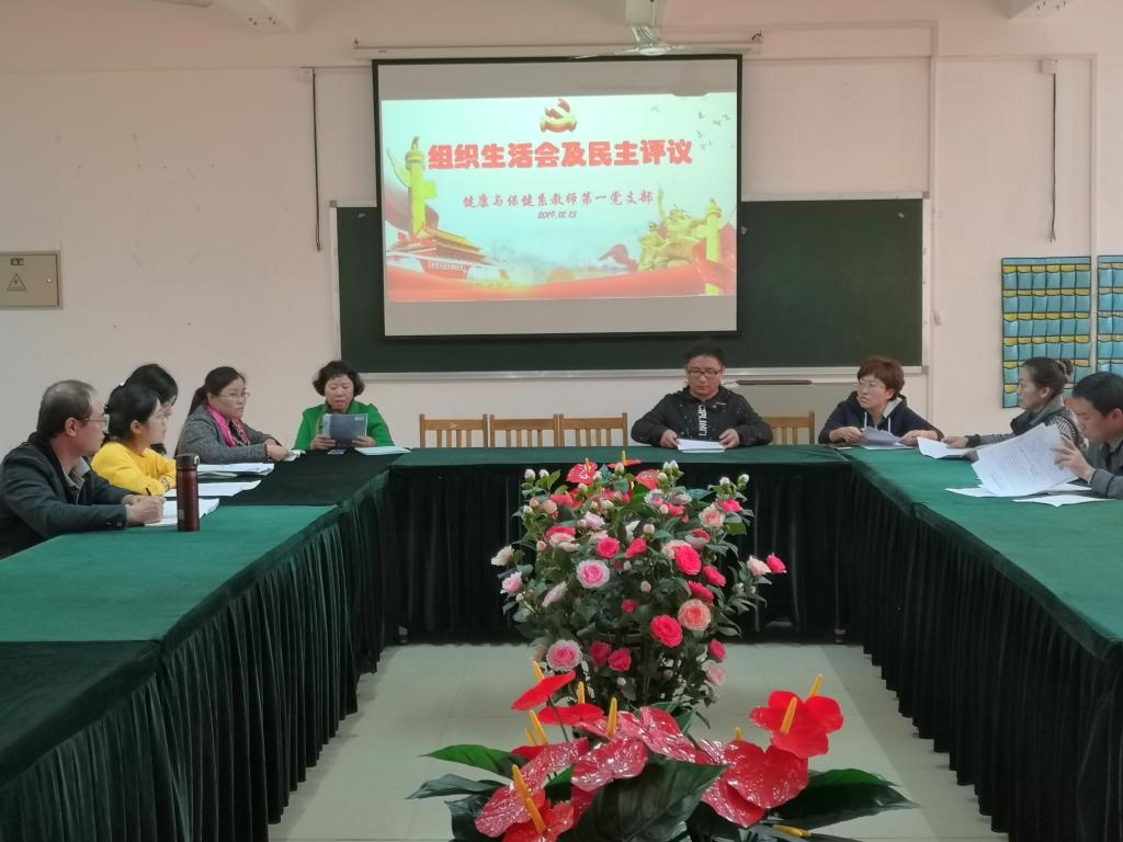 2019年12月13日下午,健康与保健系教师第一党支部在致贤楼301室召开2019年度组织生活会。会议紧扣习近平总书记“不忘初心、牢记使命”主题教育重要讲话精神,精心组织学习,开展谈心谈话,深入查找问题,剖析思想根源,认真开展批评和自我批评。