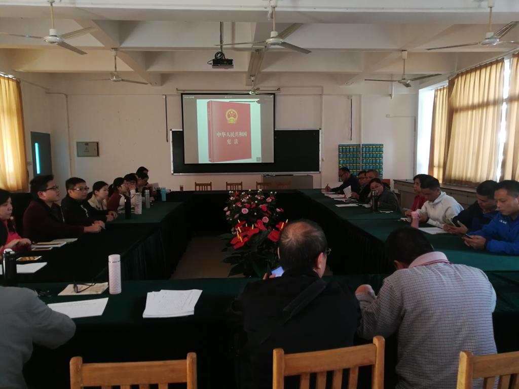 为全面贯彻中央、省委关于宪法法律学习宣传教育和高校意识形态工作的安排部署,认真落实全省高校宪法法律学习宣传教育活动,12月3日下午,我系在致贤楼301会议室开展“学宪法,讲宪法”集中学习活动。