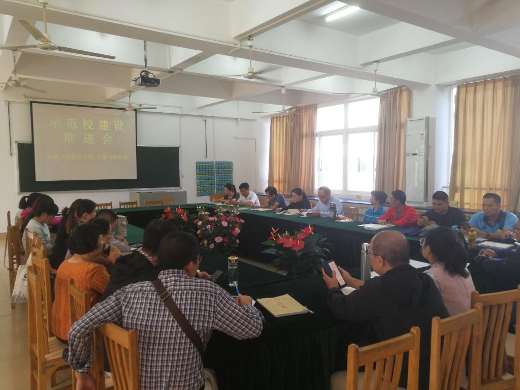 10月29日下午,健康与保健系关于学院示范校建设推进会在致贤楼301隆重举行。系部领导班子成员和全体教职员工参加了此次会议。会议由健保系主任主持。