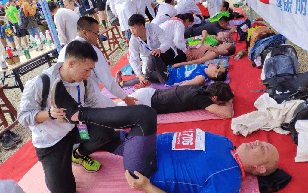 漳州卫生学院健康与保健系运动防护团队为此次活动提供了推拿防护保障。比赛时间为早上8点,为保障提前到岗服务,同学们当天4点多就起床进行准备,穿好指定服装,带好所需物品,在5点准时出发,到达比赛场地为运动员们提供赛后常规肌肉牵伸放松,运动损伤现场评估诊断,宣教赛后运动损伤康复的预防及治疗。