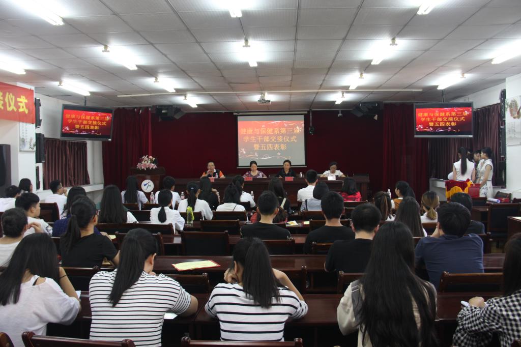 大会首先以VCR的形式对过去一年中学生工作的成果进行了展示,学院党委委员、系党总支书记蓝淑华宣读了新一届团总支学生会和自律会干部任职名单,系副主任宣读了五四表彰决定,系领导为学生干部代表颁发了聘书和奖状。第二届学生会主席江志松同学作为学生干部代表发言,对学校一年来的培养和团队成员的努力表示感谢,并寄语未来,希望新一届学生干部开拓创新,取得更大成绩,希望健康与保健系越来越好。