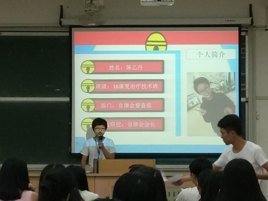 4月20日晚,健康与保健系自律会在明德楼22教开展了自律会干部竞选。出席此次竞选的嘉宾有指导老师林强老师,辅导员王君老师,院自律会会长及其带领的培养人,各系部自律会会长及其带领的培养人,系自律会干部等。参加此次竞选的同学共有11位,竞选以“我的大学生活”为主题展开演讲,并对在自律会的工作展开阐述,提出自己的工作计划和建议。竞选演讲中各培养人热情洋溢,表达了自己能够胜任工作的信心及自己在自律会努力工作服务同学的决心。