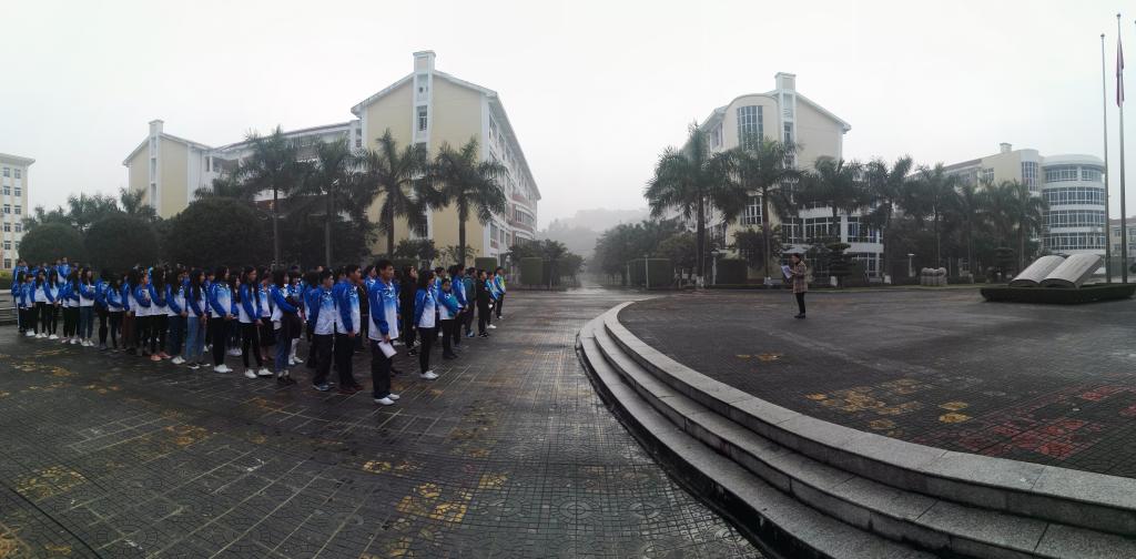 2月20日早上七点十五分,健康与保健系在行政楼前的广场上举行本学期第一次升旗仪式。健康与保健系师生参加了本次升旗仪式,学院党工部部长兼健康与保健系党总支书记蓝淑华出席仪式并发表讲话。