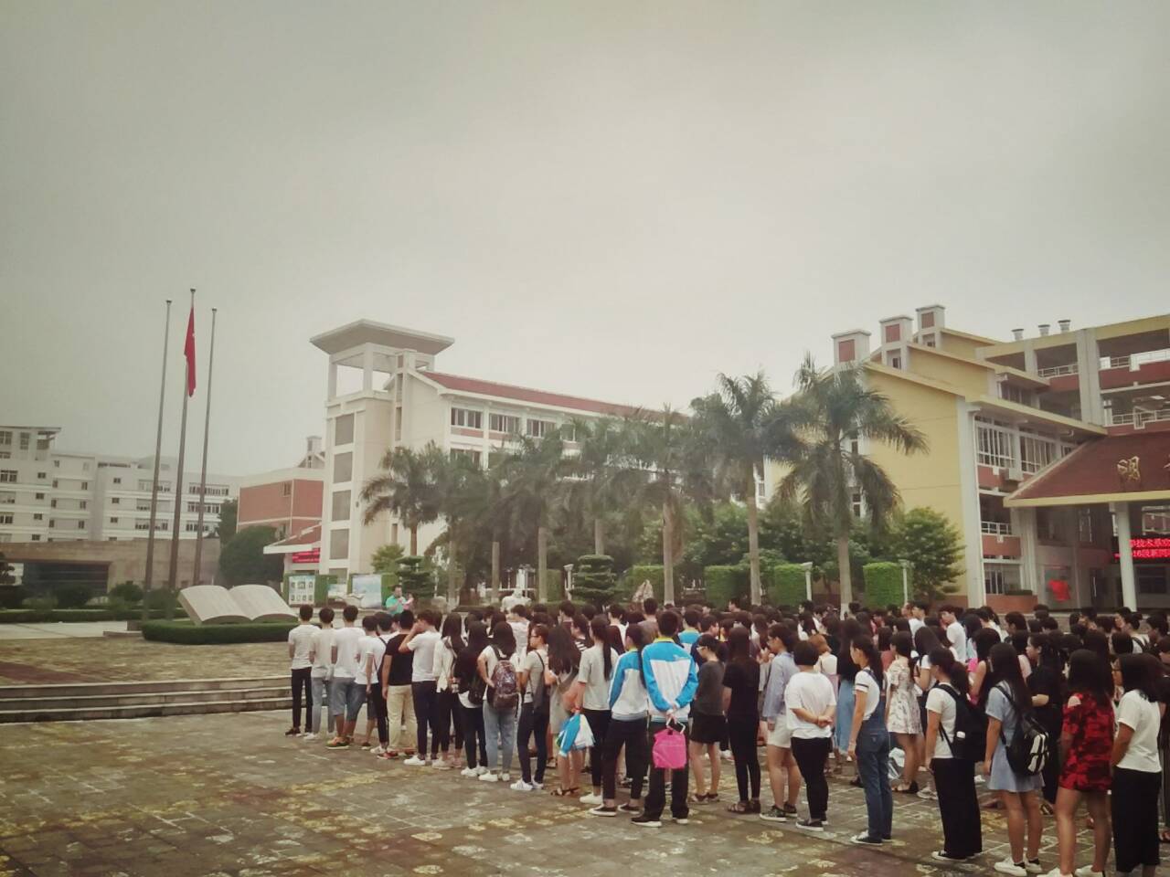 9月12日,健康与保健系在学院行政楼广场升旗台举办本学期首次升旗仪式。早晨7点10分,健康与保健系2015级和2016级的所有同学来到学院行政楼广场前排起整齐的队伍,静候升旗仪式开始;7点15分,在庄严的国歌声中,五星红旗徐徐升起。
