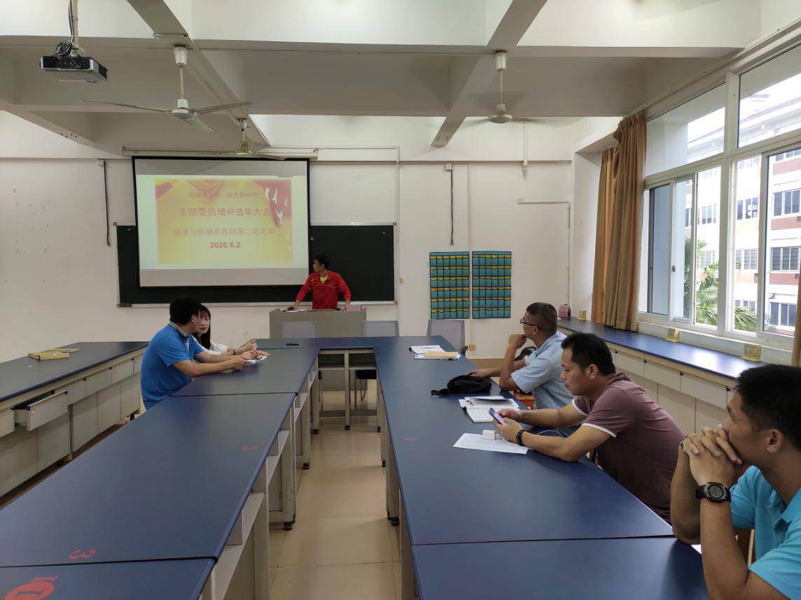 2020年6月2日上午,健康与保健系教师第二党支部在致贤楼301会议室召开新一届支部委员会增补选举大会,会议由健保系教师第二党支部书记主持,健保系教师第二党支部全体党员参会。