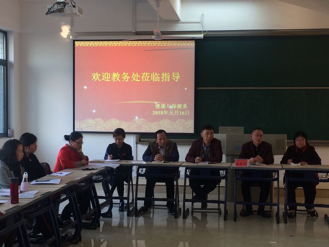 2018年1月16日下午,教务处一行7人到健康与保健系开展调研座谈。会议由系部负责人主持,系部全体教职工参加。