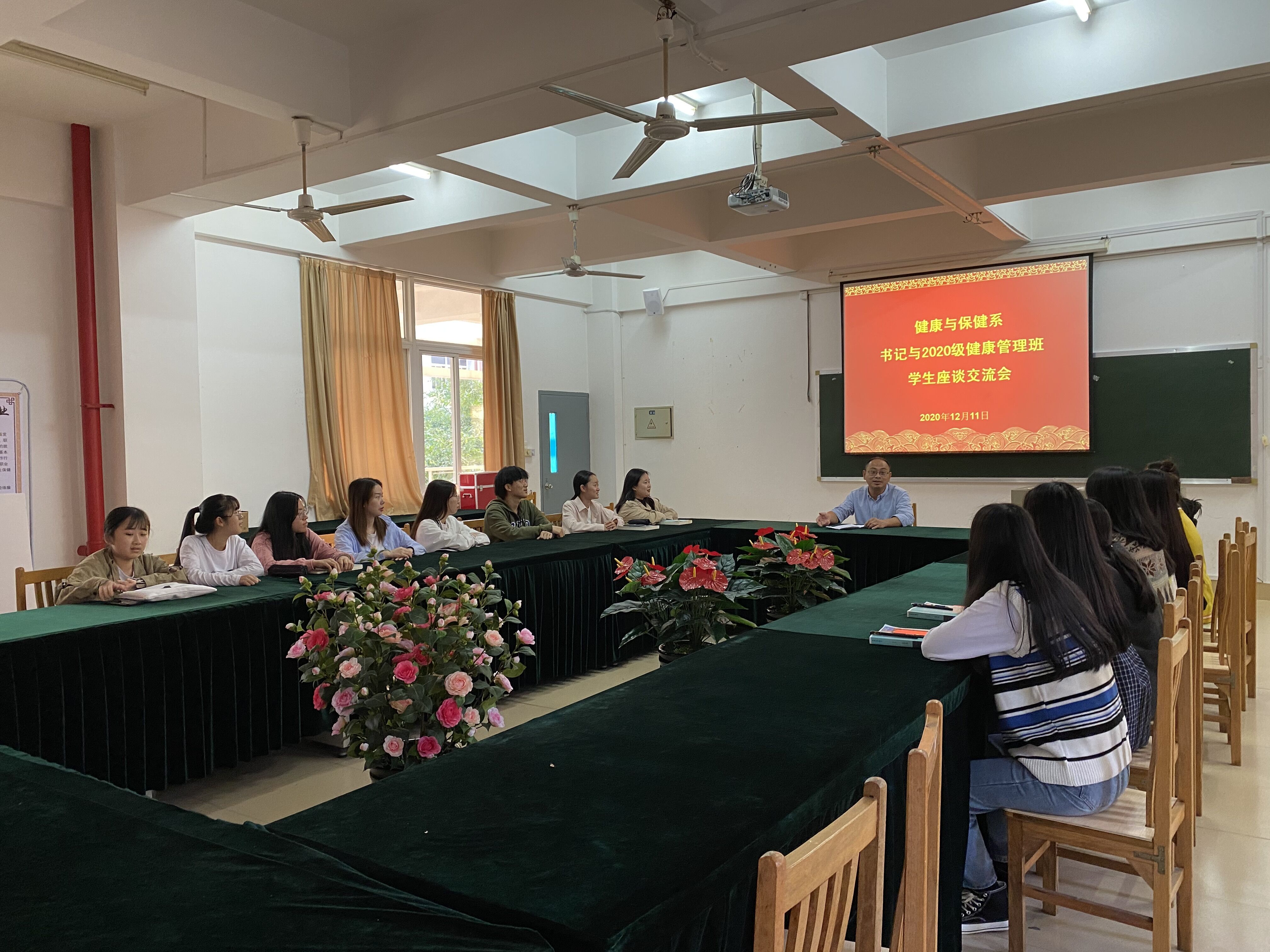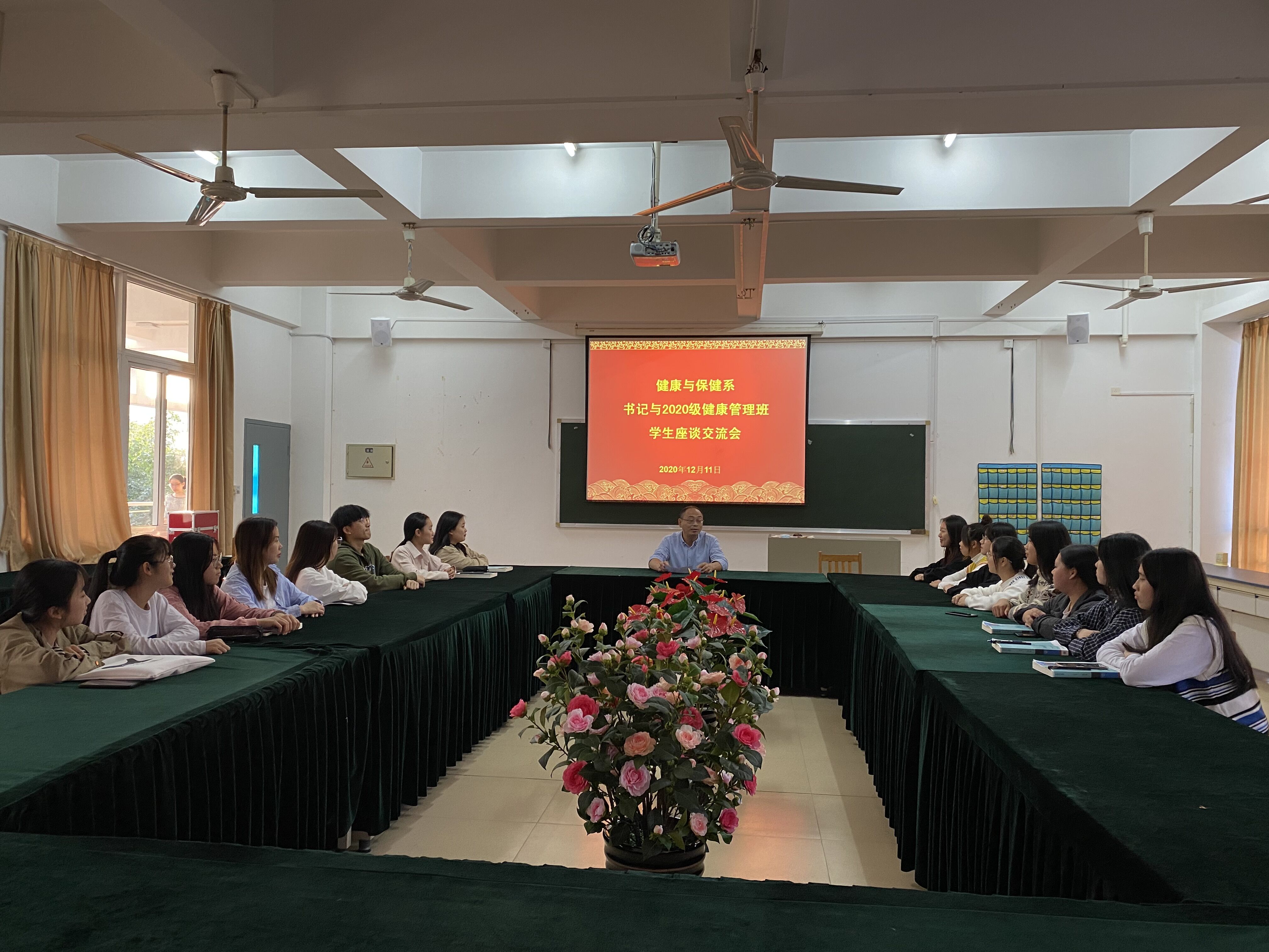 12月11日下午,健康与保健系副书记与2020级健康管理班学生座谈交流会在致贤楼301会议室召开。此次会议由健康保健系书记周继峥主持,20级健康管理班学生代表参加。