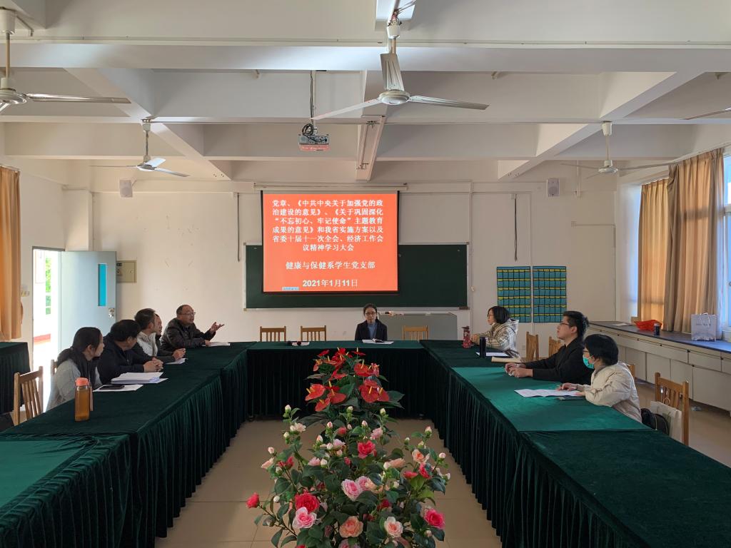 2021年1月12日下午,健康与保健系学生党支部在致贤楼301召开组织生活会。会议由支部书记主持,支部全体成员参加。