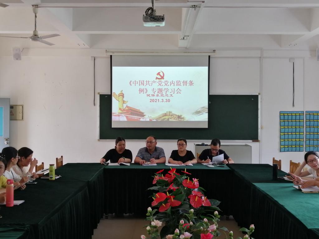 3月30日下午,健康与保健系党总支在致贤楼301会议室召开会议,开展《中国共产党党内监督条例》专题学习活动,专题学习会由党总支副书记周继峥主持。
