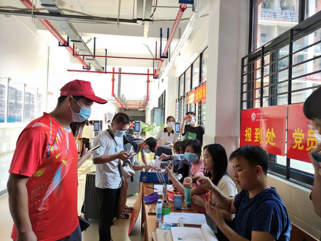 9月11日,新生报到,我系党总支组织师生党员分工协作、齐心协力,助力迎新工作。我系党总支设置了“党员先锋示范岗”,师生党员亮出身份,冲在一线,积极奉献,为新同学提供贴心服务。因疫情防控需要,学生家长未能进校,面对着大包小包的行囊,师生党员化身“搬运工”,热心帮助新同学搬运行李包裹,张贴着“党员先锋示范岗”的电瓶车穿梭于校园,化作一道靓丽的风景线。同时,“党员先锋示范岗”坐镇公寓大本营,主动服务,围绕服务咨询、住宿安排等方面积极主动开展工作,为新同学提供热情周到的服务,真正做到哪里有困难,哪里就有党员,展示了师生党员良好的精神风貌。