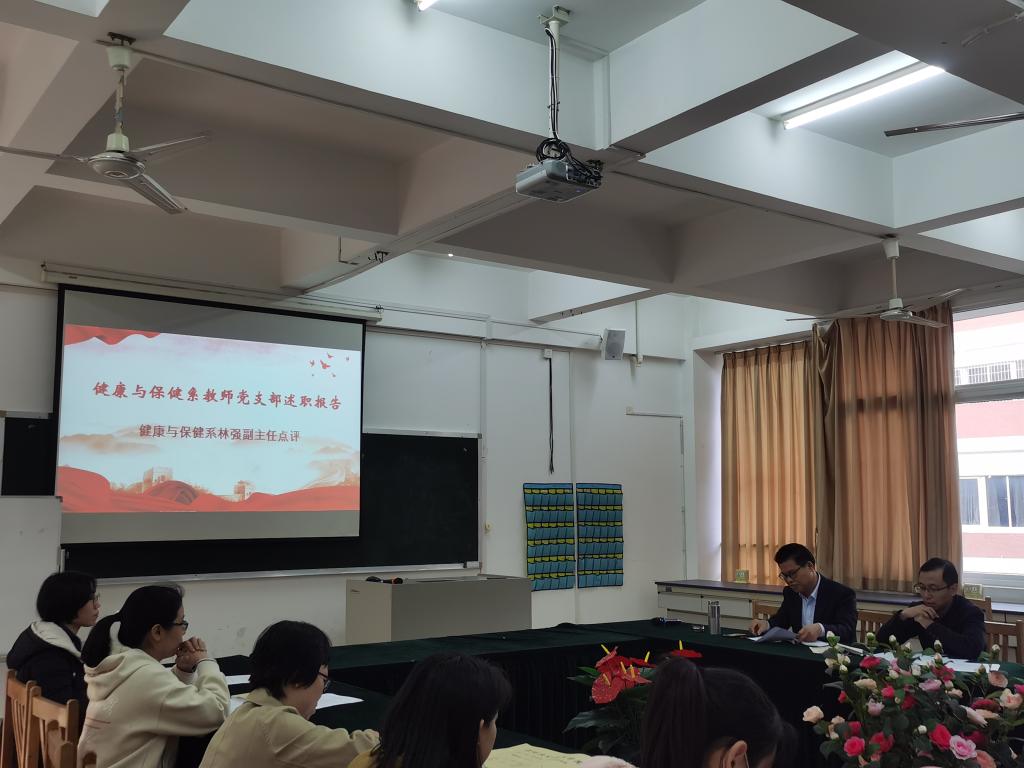1月6日下午,健康与保健系2021年度党支部书记党建工作述职评议会在致贤楼301举行。健康与保健系党总支委员、支部书记、党员代表参加了会议,会议由系党总支书记主持。