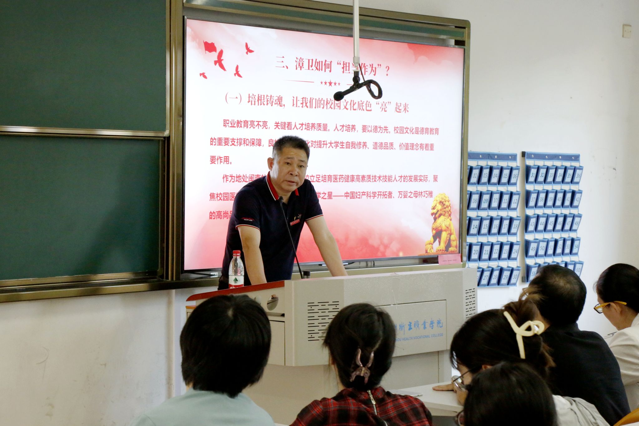 陈义三紧扣学习贯彻习近平新时代中国特色社会主义思想这一主线,结合我校实际情况,围绕何为“担当作为”、为何要“担当作为”、漳卫如何“担当作为”三个方面展开,为师生讲授了一堂有理论、有实践、有深度的专题党课。他强调,在打造学校高质量发展的道路上,要树立强烈的事业心和责任心,坚决克服心态疲疲沓沓、姿态懒懒散散、状态拖拖拉拉的工作和学习状态;要以此次主题教育为契机,抢抓机遇,攻坚克难,打好双高建设“攻坚战”、本科培育“先手牌”,把习近平总书记职业教育“大有可为”的重要指示转化为“大有作为”的“漳卫实践”,以主题教育“进行时”来推动学校发展“未来时”。