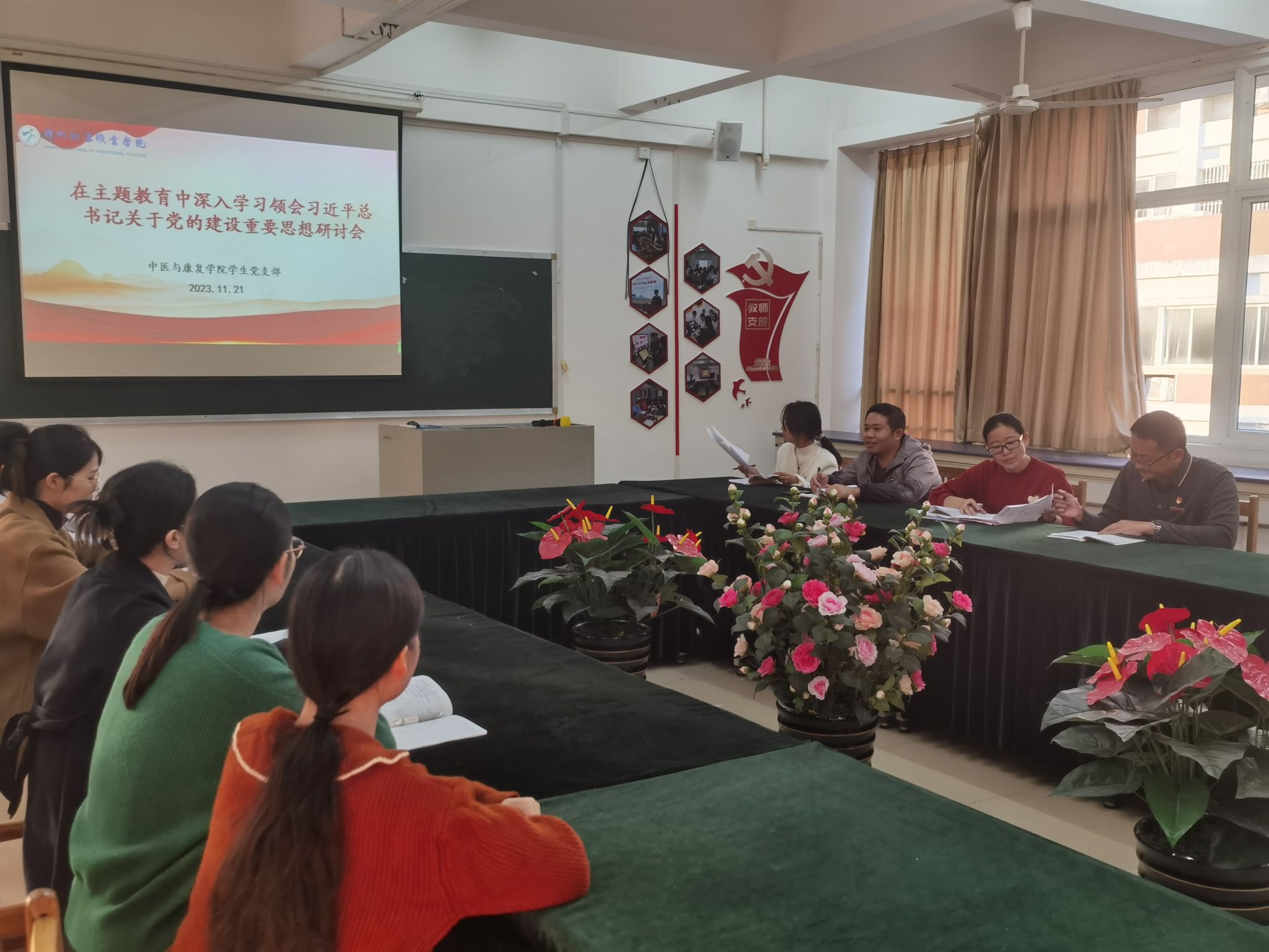 11月21日下午,中医与康复学院学生党支部围绕“深入学习领会习近平总书记关于党的建设的重要思想”主题,在智贤楼301会议室召开专题研讨会。