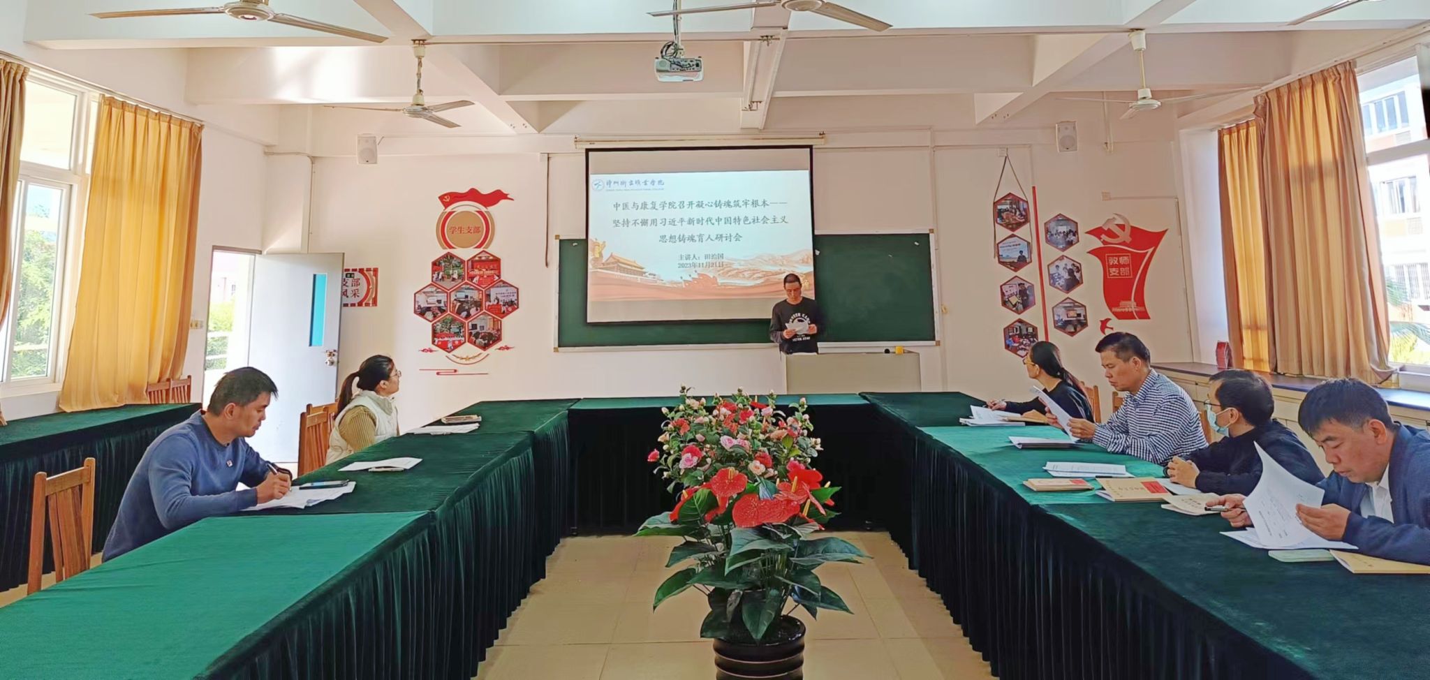 11月21日上午,中医与康复学院党总支理论学习中心组在致贤楼301会议室,围绕“凝心铸魂筑牢根本——坚持不懈用习近平新时代中国特色社会主义思想铸魂育人”进行专题学习研讨,并深入学习习近平新时代中国特色社会主义思想,坚决杜绝“低级红”和“高级黑”现象。学院党总支副书记主持会议,总支纪检委员田治国老师主讲。