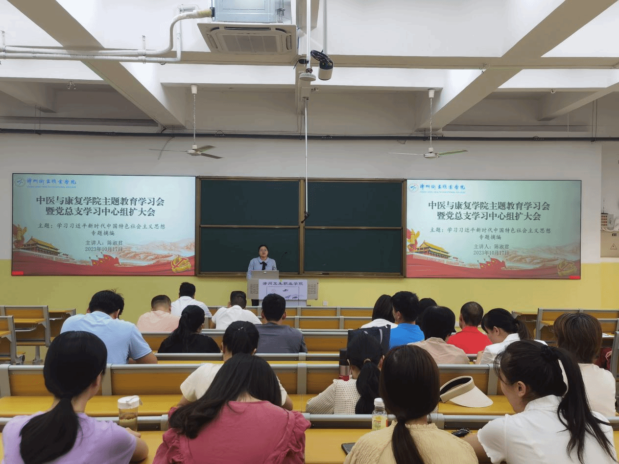 10月17日下午,中医与康复学院在明德楼104教室召开主题教育学习会暨党总支理论学习中心组学习扩大会,组织全体教职工学习《习近平新时代中国特色社会主义思想专题摘编》(以下简称《专题摘编》)。会议由学院党总支副书记主持,组织委员主讲。