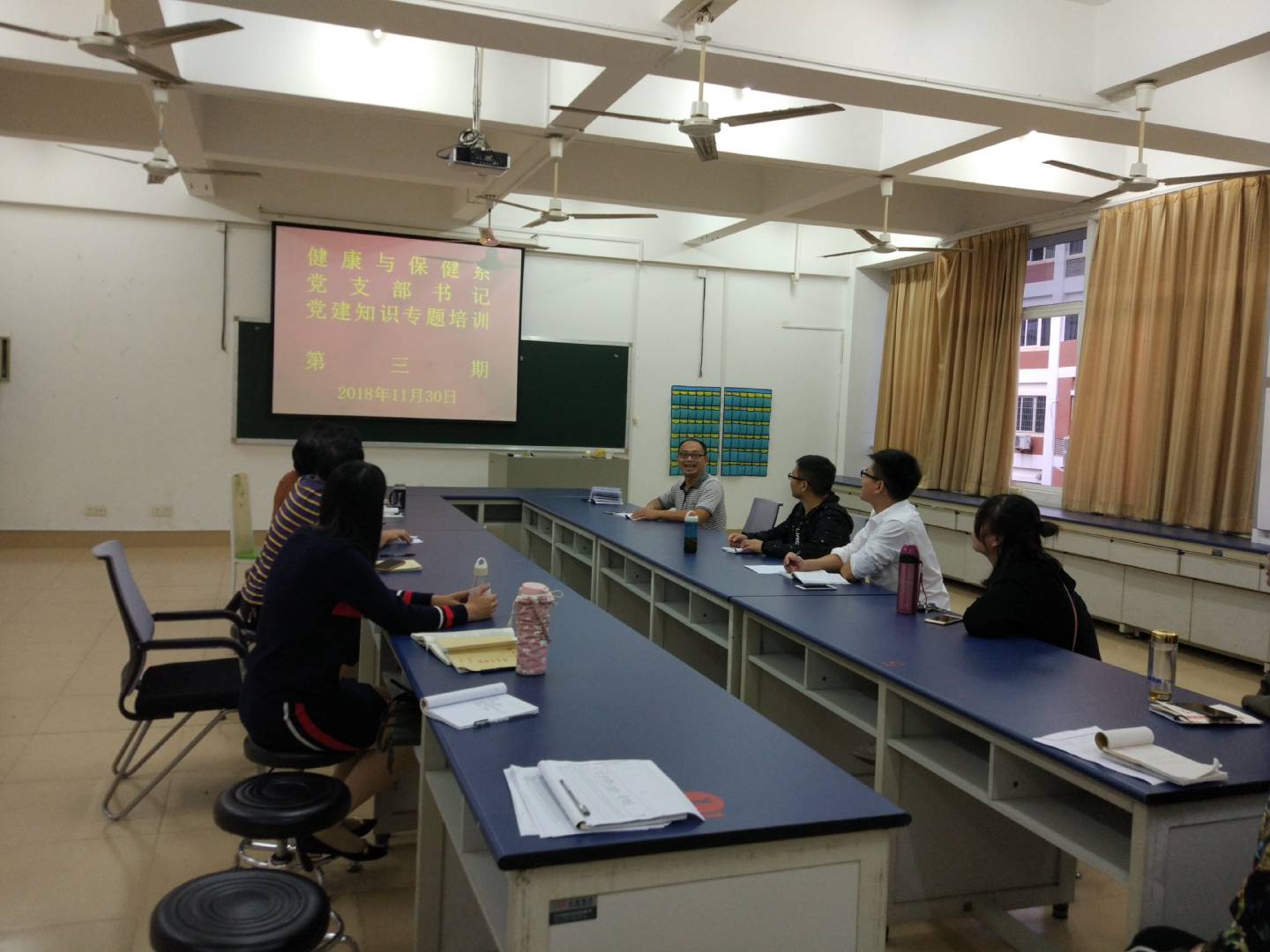 为落实全面从严治党,深入推进“两学一做”学习教育常态化制度化,进一步提升党员干部的综合素质,11月30日,健康与保健系副书记组织开展党建知识培训班第三期,各党支部书记参加培训。