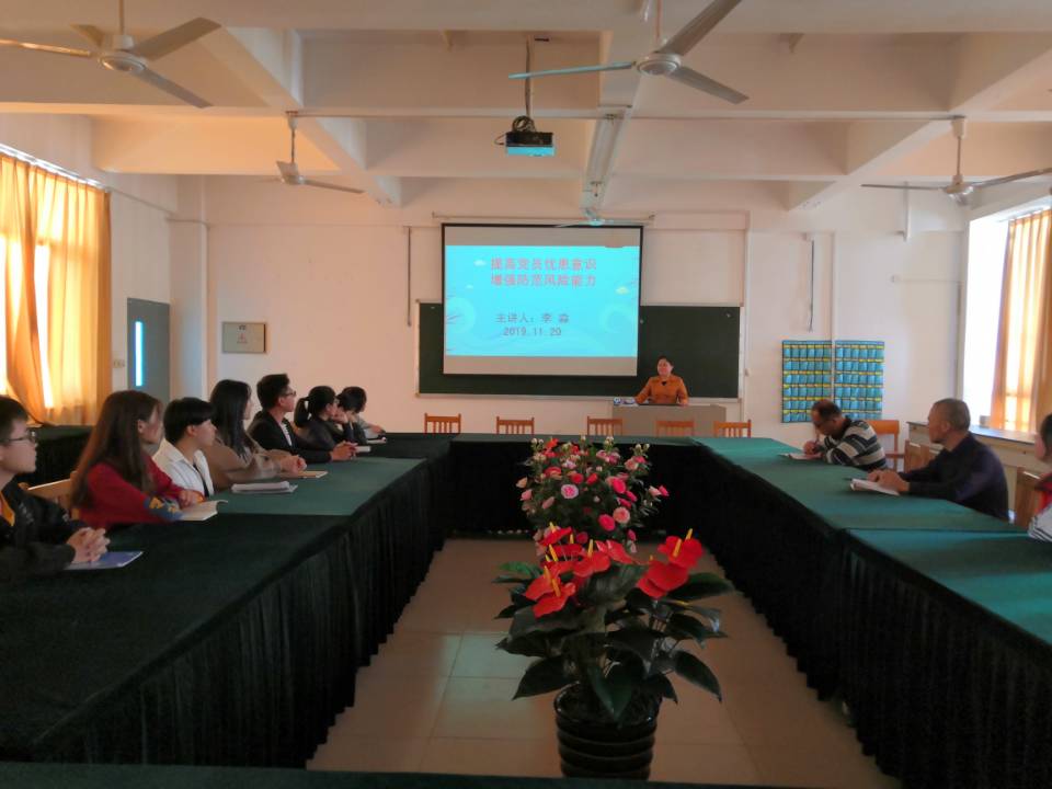 按照健康与保健系党总支“不忘初心,牢记使命”主题教育工作安排,11月20日上午,健康与保健系主任在致贤楼301教室为本系党员教师和学生讲授主题为“提高党员忧患意识,增强防范风险能力”的党课,广大师生收益匪浅。