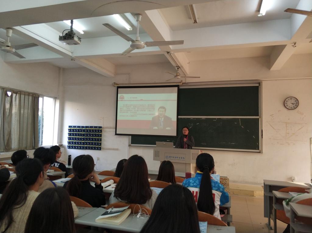 2019年12月13日,健康与保健系李主任走进明德楼307教室为2019级高职针灸推拿专业学生讲授了一堂题为“以新思想武装头脑培养青年学子成才”的思政课。课堂中,李主任以时代伟人为例,结合现实,阐述了“思想”与“成才”、“奋斗”与“幸福”之间的关系,并以习近平总书记寄语“青年大学生,要忠于祖国,忠于人民;要立鸿鹄志,做奋斗者;要求真学问,练真本领;要知行合一,做实干家”作为勉励,鞭策同学们在新时代,要有新思想、新作为,时刻牢记“奋斗本身就是一种幸福”,不负青春不负韶华。